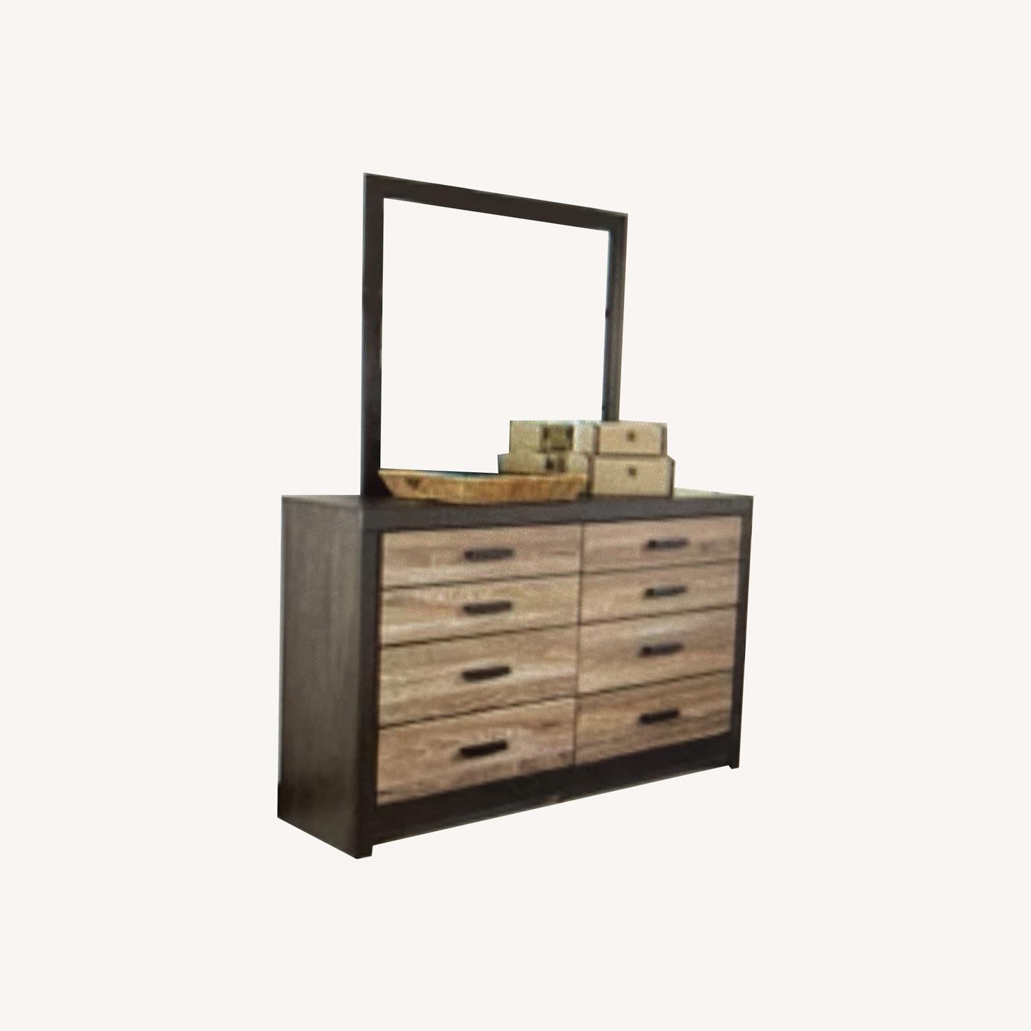 Seller's Notes:Warm gray/charcoal Dresser dimensions 62W x 15 D x 36 H Mirror 42 W x 1 D x 36 H 6 drawers- top 2 drawers are double Mountable mirror currently wrapped and stored (pic of it assembled is from the website ) Some wear and tear on dresser. Would cover nicely with wood paint I think. Attachable mirror in excellent condition (currently wrapped and stored)