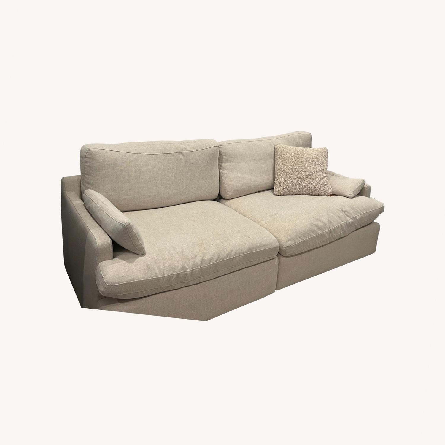Seller's Notes:2 piece modular sofa bought from Ashley Homestore. I am the first owner of this sofa for personal use. My cat Bella slept on it before and left small scratches on the arms of the sofa but does not affect anything at all.