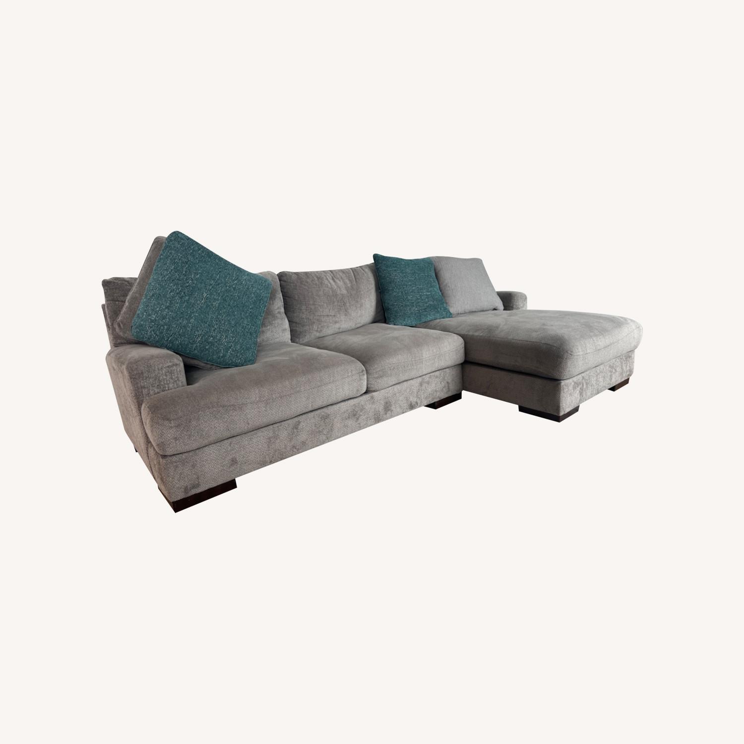 Seller's Notes:2-Section Sofa with Chaise Lounge - Bardarson Collection by Ashley Furniture Due to relocating, we are selling our cherished Bardarson sectional sofa from Ashley Furniture. Gently used for just one year, this sofa is in excellent condition. It's incredibly soft and comfortable, perfect for relaxing. The sofa comes with six decorative feather-filled pillows that enhance its cozy appeal. Its versatile color blends seamlessly with almost any decor.