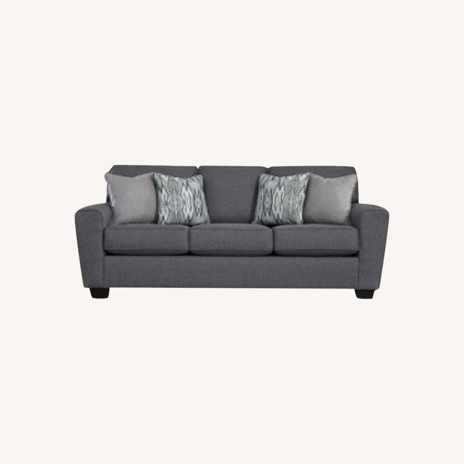 Seller's Notes:Couch is basically brand new - no scratches or marks/odors. Well cared for, not used often. In the chicest shade of gray, Calion sofa’s linen-weave upholstery complements so many color schemes and aesthetics. Flared arms and prominent welting add just enough panache to this sweet and simple sofa. Supportive seat cushions make for one comfortable landing pad. • Corner-blocked frame • Attached back and loose seat cushions • High-resiliency foam cushions wrapped in thick poly fiber • Polyester upholstery • Exposed feet with faux wood finish • Excluded from promotional discounts and coupons Fabric Details • Body Polyester (100)% Weight 136 lbs. (61.69 kgs.) Dimensions • Width: 87.00" • Depth: 38.00" • Height: 38.00" Additional Dimensions • Seat depth: 22.00" • Seat height: 19.00" • Distance between arms: 69.00" • Top of cushion to top of back: 18.00" • Arm height: 26.00" • Minimum width of doorway for entry: 32.00" • Leg height: 3.00"
