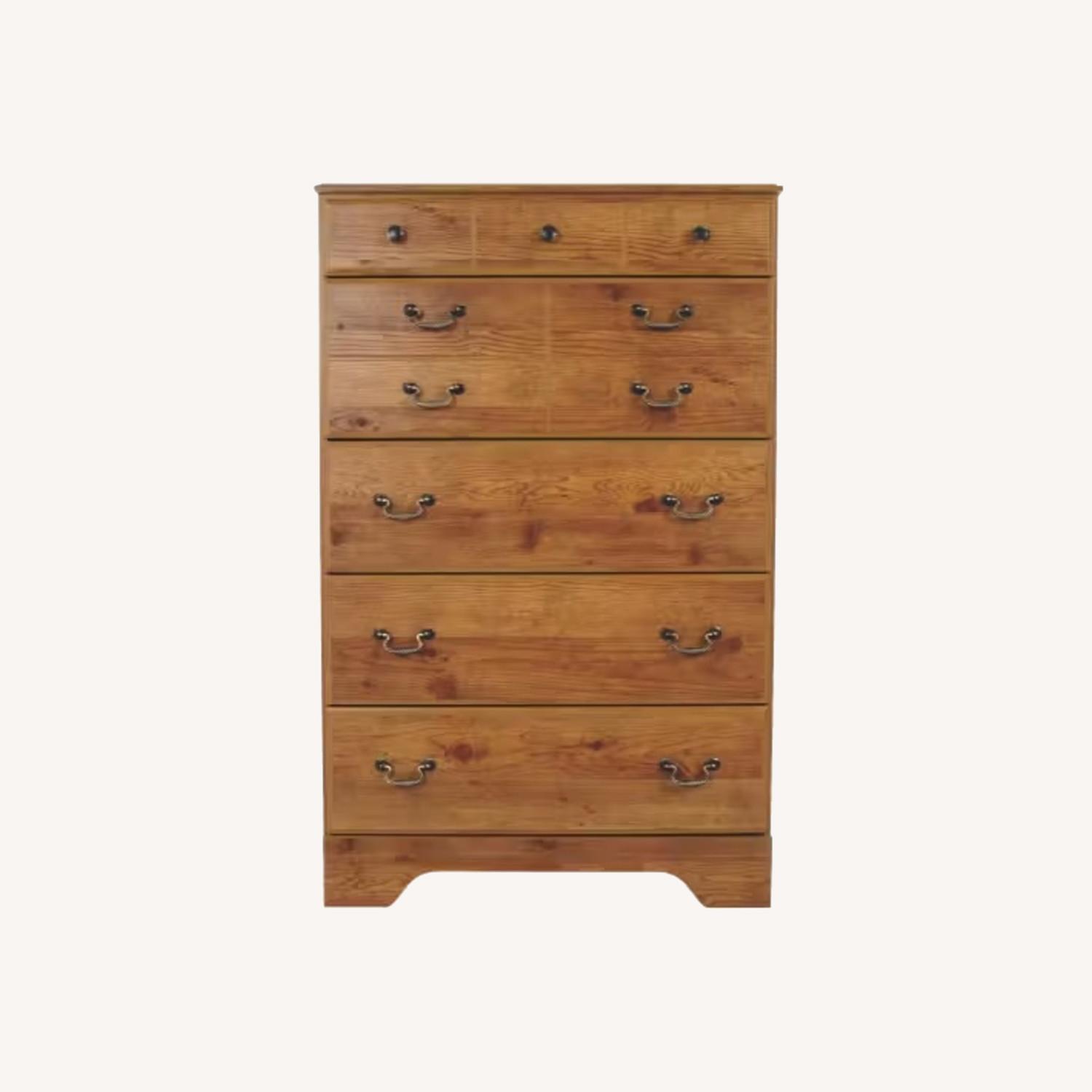 Seller's Notes:Natural wood 5 drawers Brass handles ****MUST GO BEFORE 4/29****