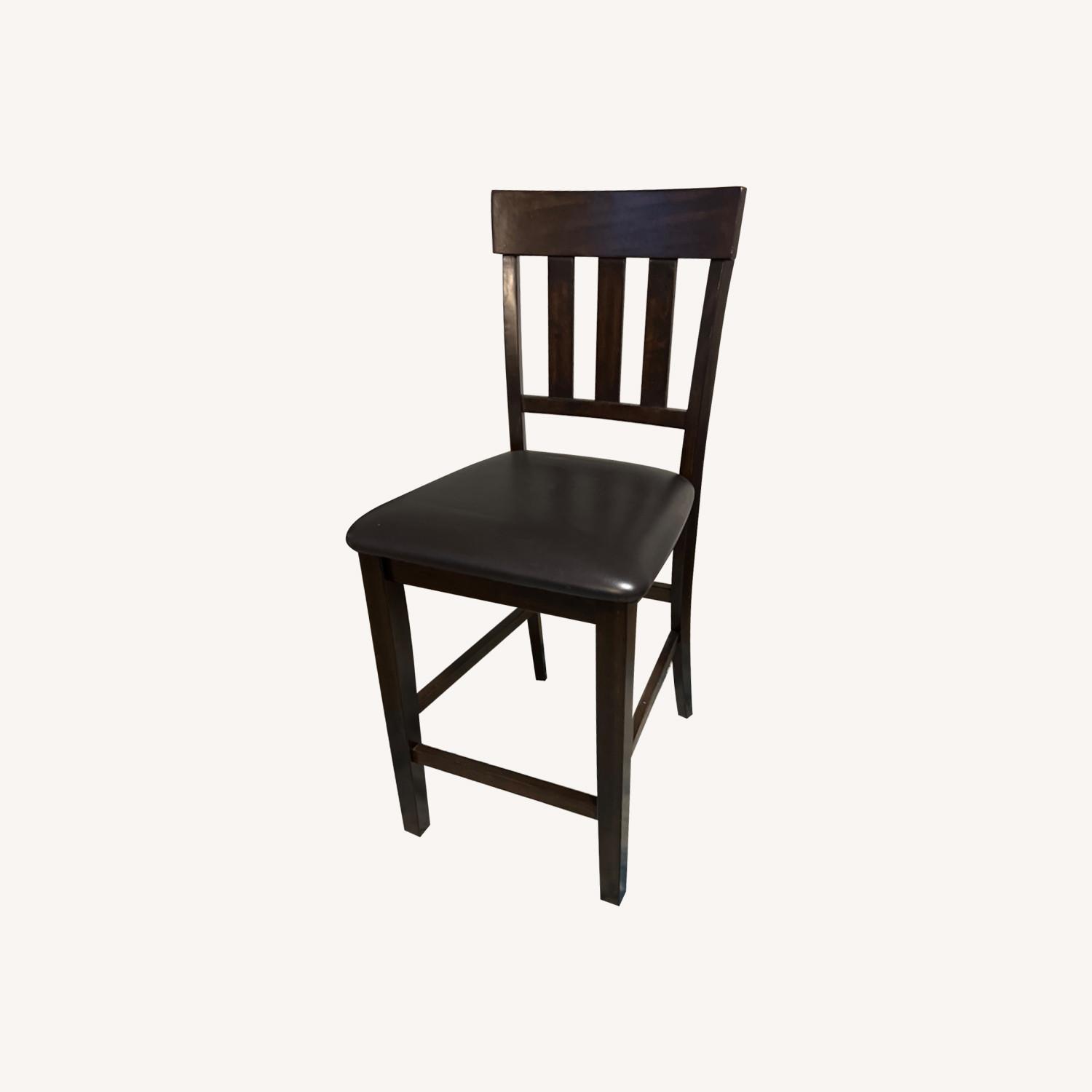 Seller's Notes:These barstools are so comfortable. They are cushioned and made of veneers, wood and engineered wood with vinyl upholstery. Although we have had them for five years, they have been in storage for the last two years since we do not currently have a need for barstools. These have stood the test of time with only a few minor scratches on the legs.
