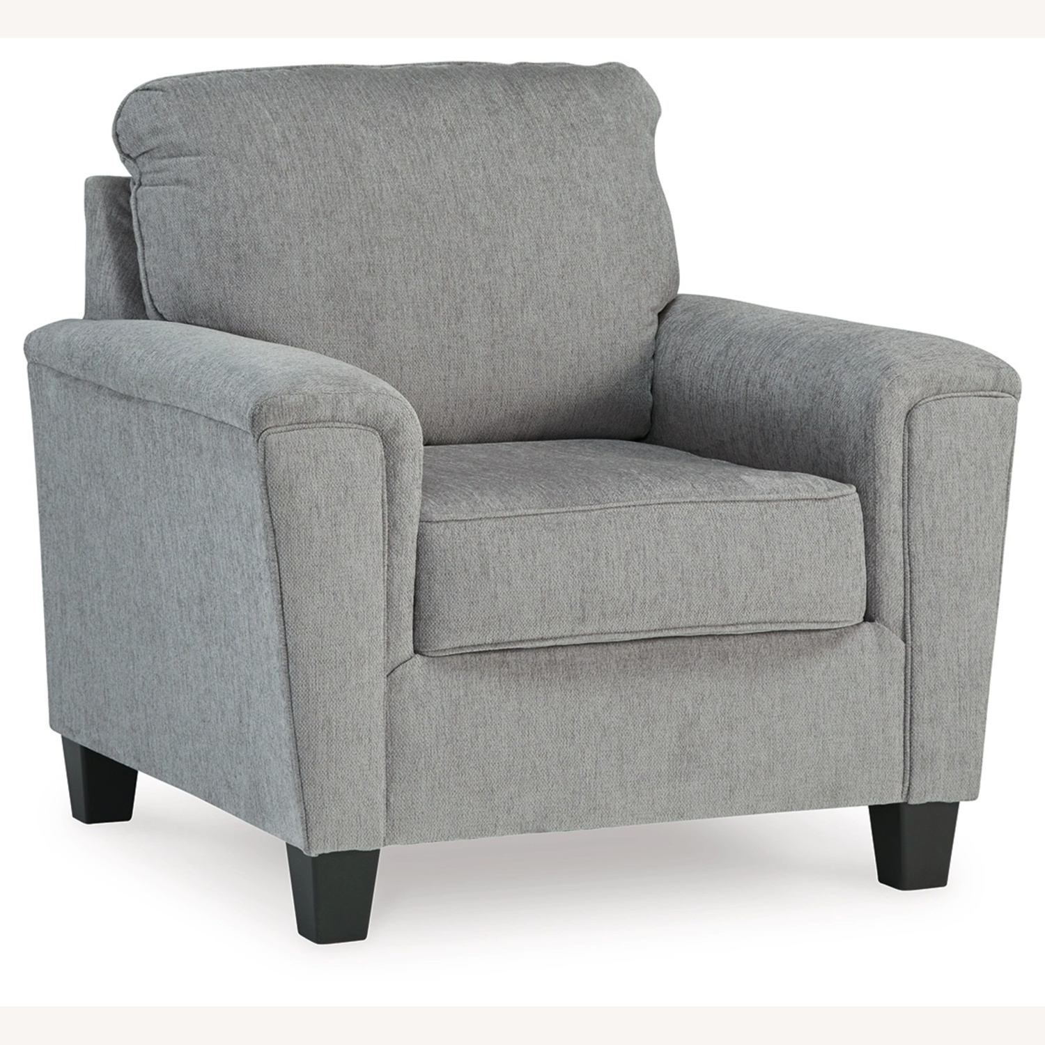 This accent chair offers an updated profile and contemporary design. Complete with padded arms and welted cushions in a versatile light gray color, this piece seamlessly complements various interiors. With its stylish design and cozy feel, it's ideal for relaxation and entertainment.