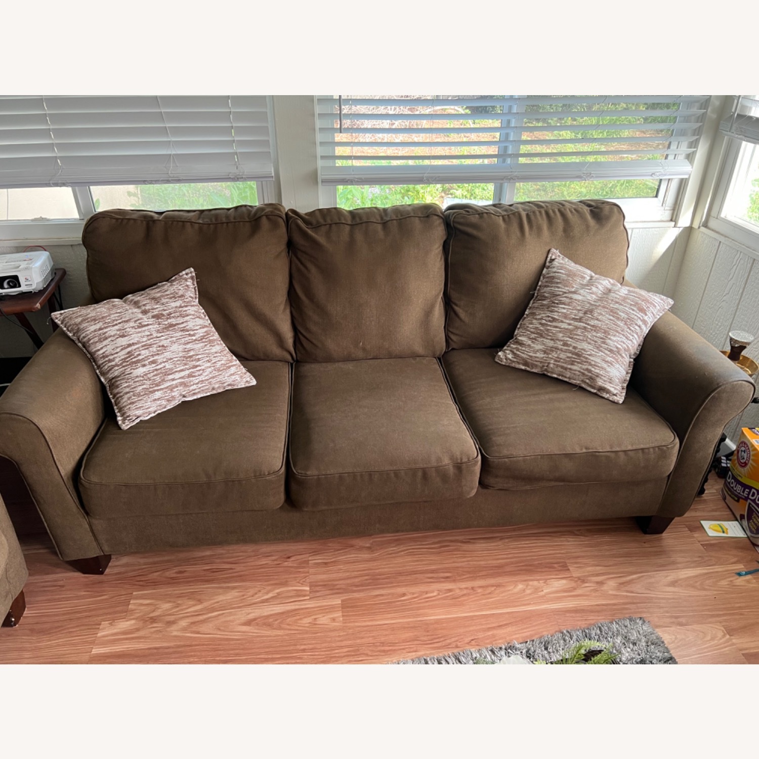 Seller's Notes:• Pullout bed • Recently cleaned and in great condition, lightly used • Includes 4 matching pillows • Great couches for guests and sleep overs! • Very comfortable • from a set of 2 • minor discoloration on armrests, color can be restored