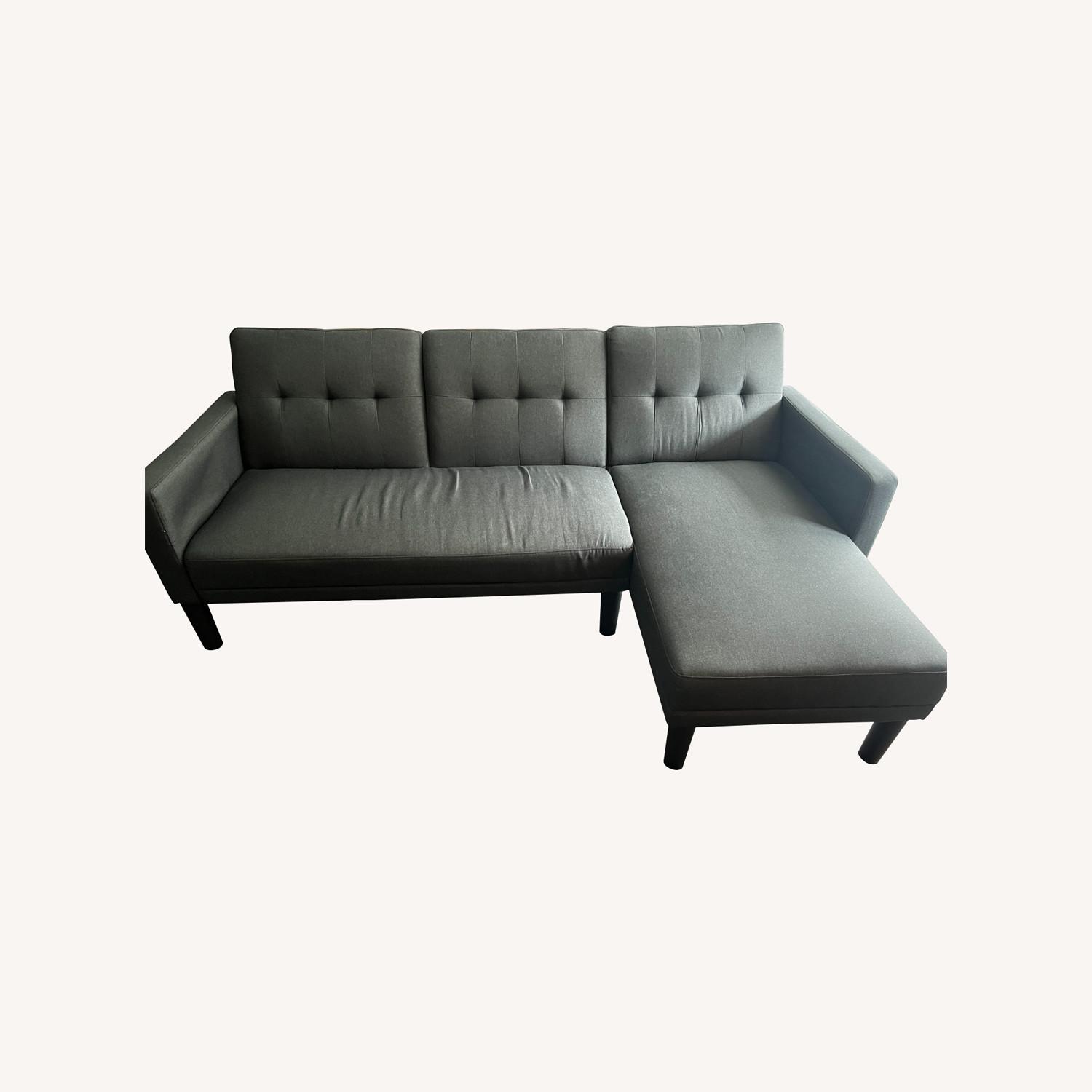 Seller's Notes:Henri futon sectional serves as a couch and an extra sleeping space. Lies flat to provide an double bed size space for sleeping. Chaise is detachable to connect to either side.