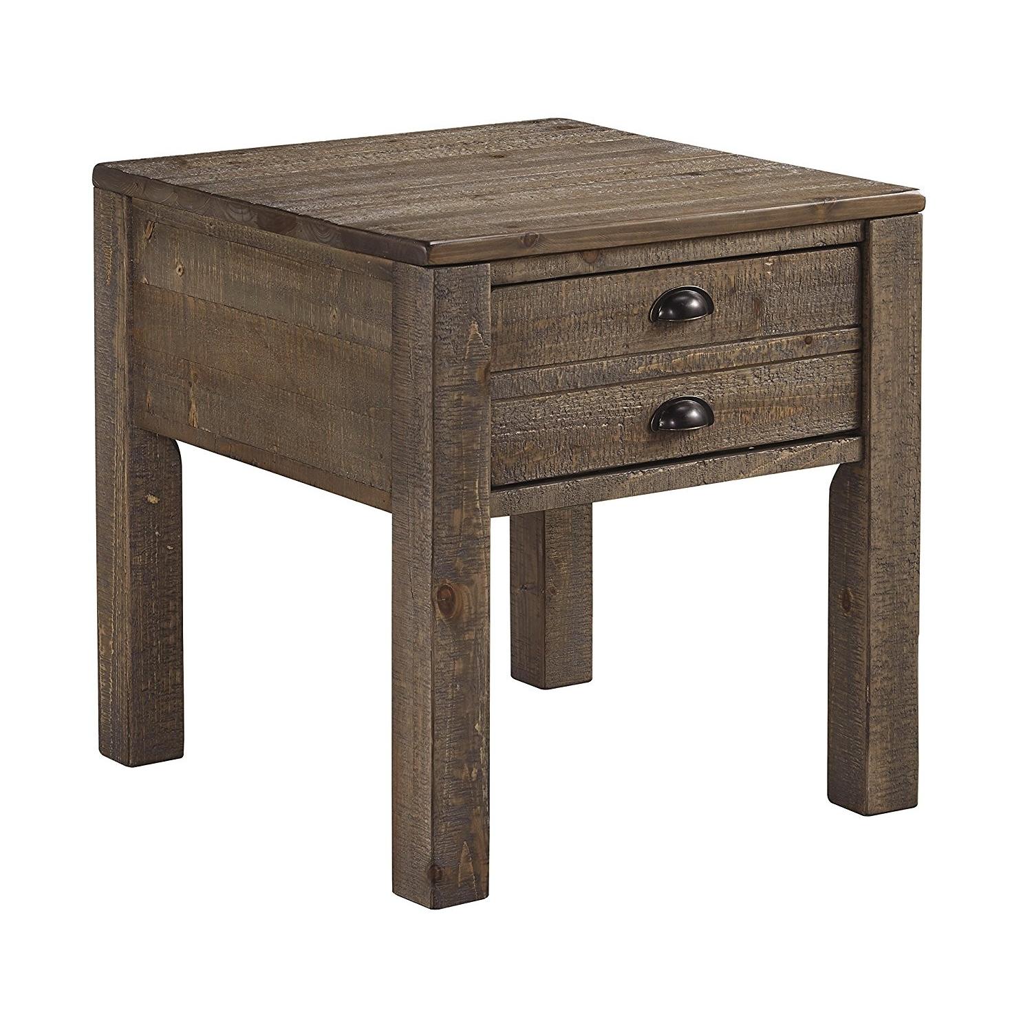 Seller's Notes:BECAUSE OF DROPSHIPPING TIME, SHIPMENTS CAN TAKE AROUND TWO WEEKS. With its apothecary-inspired details and weathered finish, Keeblen end table gives an eclectic vibe and old timey charm. A roomy drawer easily accommodates all your chairside needs.