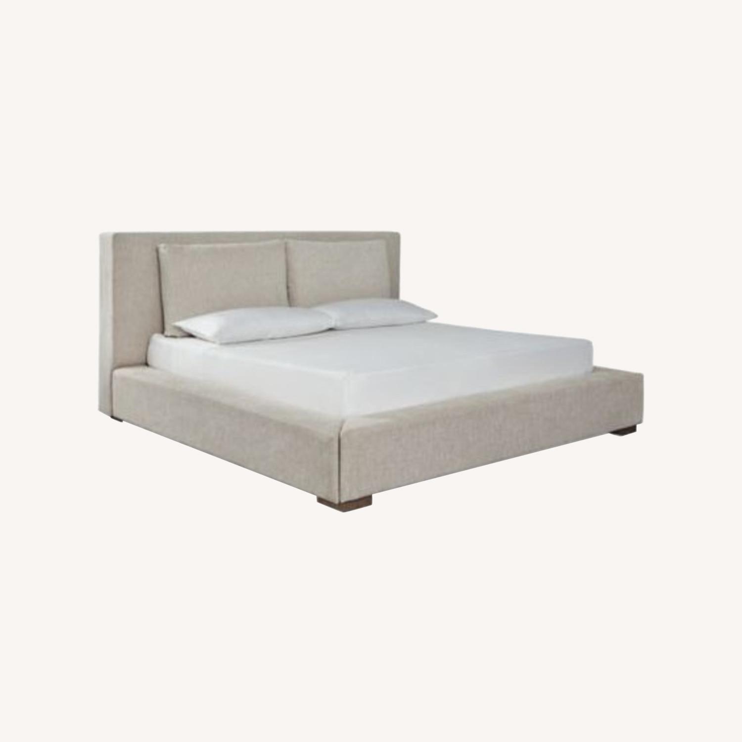 Seller's Notes:Gorgeous modern upholstered queen bed. Purchased from Ashley Furniture less than 6 months ago; barely used as I travel long stints for work. Includes upholstered panel bed (headboard, footboard and rails) and 2 loose bolster pillows. Bed does not require additional foundation/box spring. Looking to get off of my hands due to a cross country move.