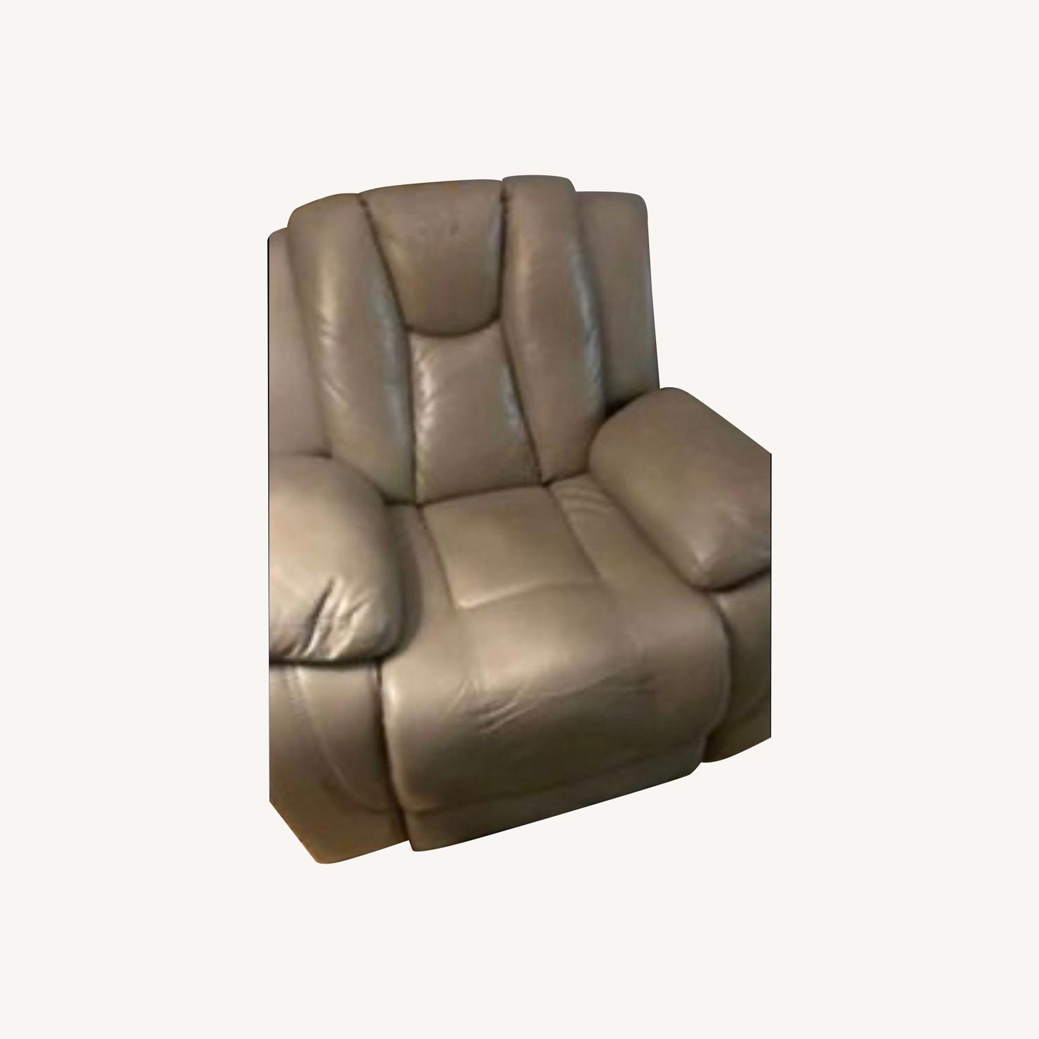 Seller's Notes:4 year old Ashley furniture real leather power reclining chair. A little bit of peeling on left arm and back, operates perfectly. One touch button on right side brings legs out and headrest back