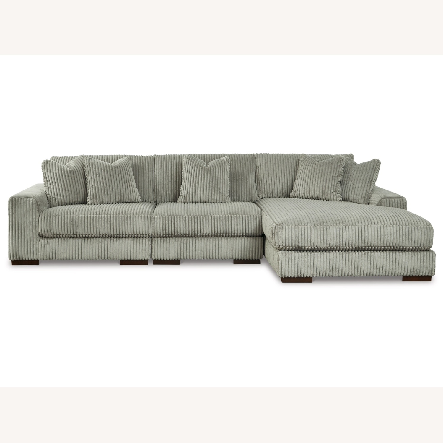 Plush and posh. Showcase your eye for on-trend texture with the statement-making cord upholstery of this sectional with chaise. Its stunningly soft fabric entices in a warm neutral hue, complementing contemporary color palettes. Sink into the cushions and plan to stay a while—this cozy living room centerpiece highlights your high-end approach to comfort and style.
