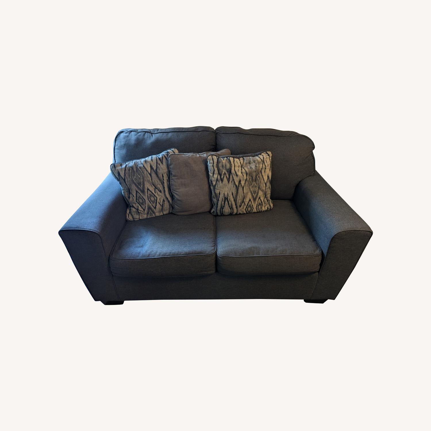 Seller's Notes:Ashley Furniture dark grey loveseat. About six years old but still in great condition. Minimal wear with age. No stains or tears. No exposure to smoke or pets. Dimensions: Loveseat Width: 62.00" Height: 37.00" Depth: 38.00"