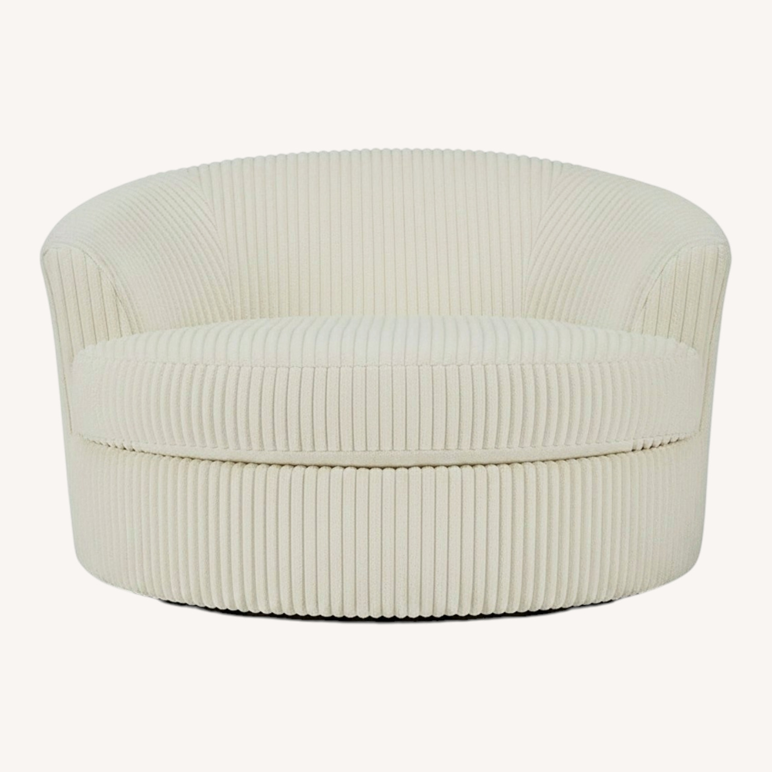 Plush and posh. Showcase your eye for on-trend texture with the statement-making cord upholstery of the Lindyn oversized swivel accent chair. Its stunningly soft fabric entices in an ivory hue, complementing contemporary color palettes. Sink into the spacious cushion and plan to stay a while—this cozy living room chair highlights your high-end approach to comfort and style. Corner-blocked frame Loose seat cushion; attached back High-quality foam cushions wrapped in poly fiber Throw pillows included Pillows with feather-fiber blend Polyester upholstery 360-degree swivel Platform foundation system resists sagging 3x better than spring system after 20,000 testing cycles by providing more even support Smooth platform foundation maintains tight, wrinkle-free look without dips or sags that can occur over time with sinuous spring foundations Fabric Details Body and Toss Pillows: Polyester (100)%