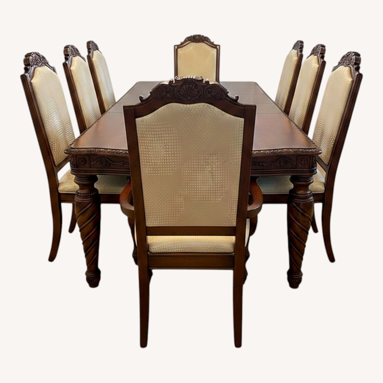 Seller's Notes:Beautiful dinning set with brand new fabric covered with white satin fabric
