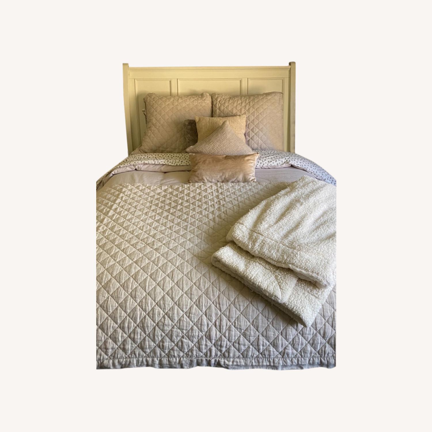 Seller's Notes:I am remodeling my room and looking to sell this beautiful, sturdy bed from Ashley Furniture. I love this bed and would keep it forever, but the headboard is too tall for my remodel plans! This bed has very little wear & tear. I replaced the original handles on the drawers to match my bedroom. Drawers are huge and store quite a bit. Distance from floor to bed is 6 1/2” which leaves space for under bed storage as long as it’s shallow enough. Distance from floor to the top of the bed frame is 19”, so this is a pretty “tall” bed if you put an 18” mattress on top of it.