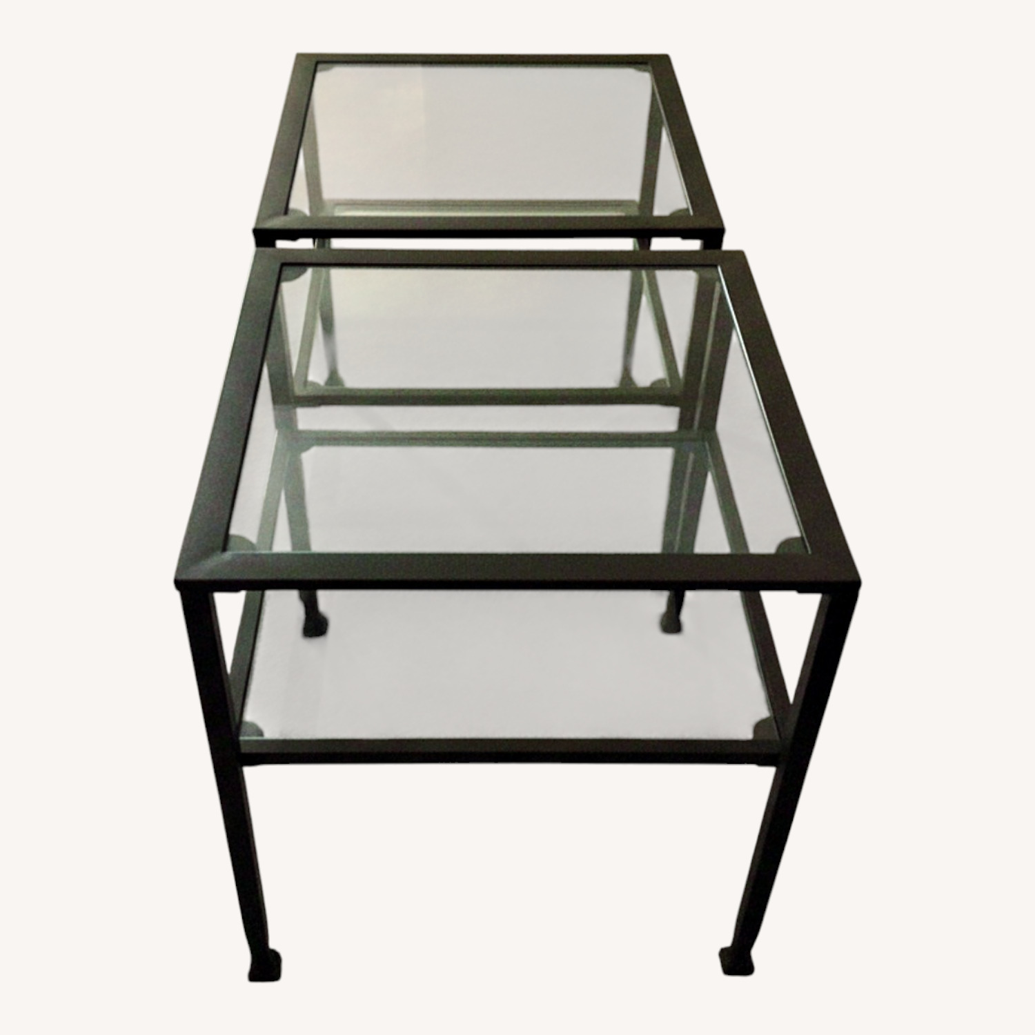 Wear and tear details: These 2 Tiered Glass End Tables are in Excellent Condition.