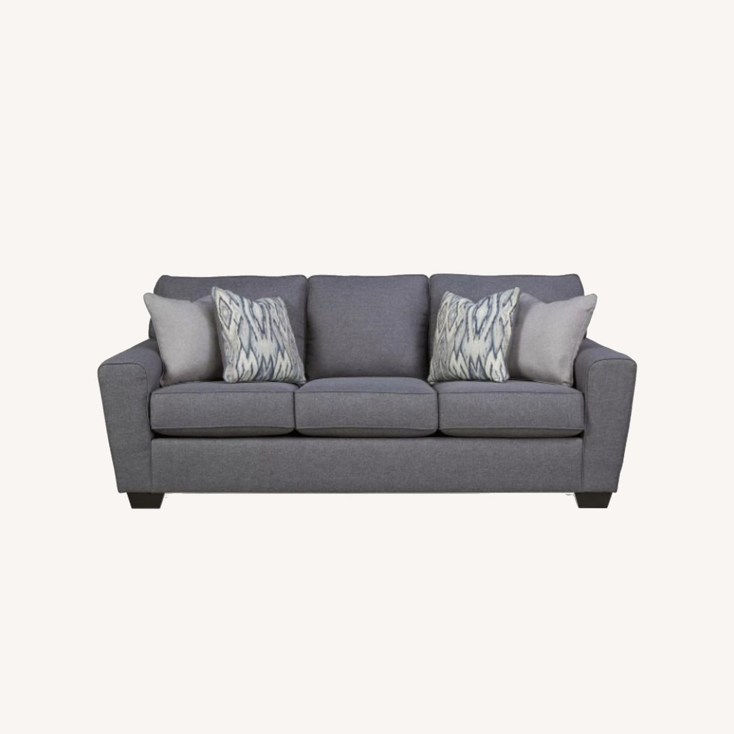 Seller's Notes:Beautiful Ashley Calion Sofa (part of a set). Cushions included! In the chicest shade of gray, Calion sofa’s linen-weave upholstery complements so many color schemes and aesthetics. Flared arms, prominent welting and flamestitch-print pillows add just enough panache to this sweet and simple sofa. Supportive seat cushions make for one comfortable landing pad. Corner-blocked frame Attached back and loose seat cushions High-resiliency foam cushions wrapped in thick poly fiber Polyester upholstery and pillows with soft polyfill Exposed feet with faux wood finish Excluded from promotional discounts and coupons Fabric Details Body and One Side Toss Pillows: Polyester (100)% Oneside Toss Pillows: Polyester (100)% Toss Pillows: Polyester (100)% Weight 136.00 lbs (61.68 kgs)
