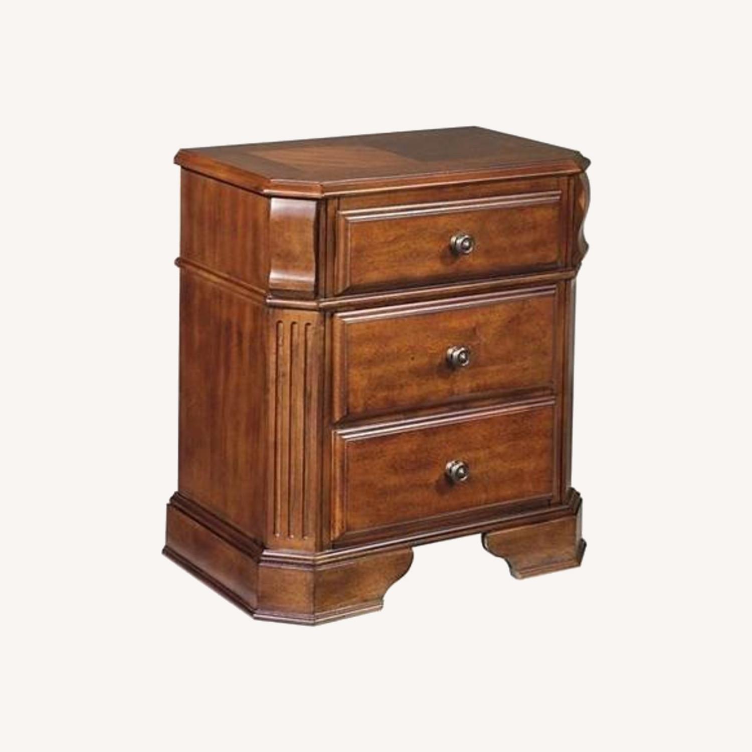 Seller's Notes:We will be selling our Queen bedroom set from Ashley Furniture. These pieces are from the Wyatt collection which is now discontinued. We will be selling 1 Queen Bed, 1 media chest (used as dresser), and 1 night stand. These pieces are beautiful solid wood pieces with medium brown cherry stained finish. Everything works perfectly fine.