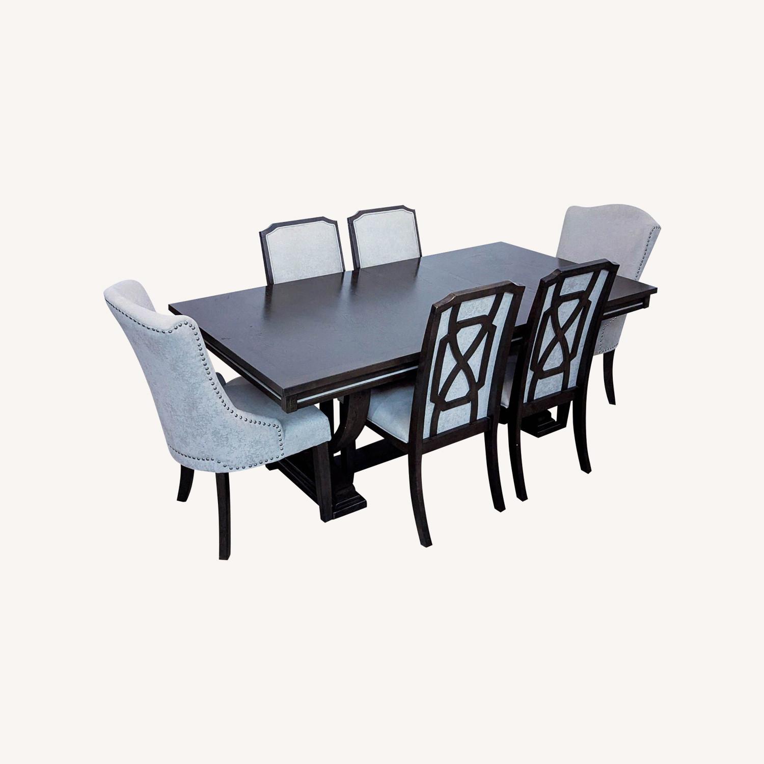 Seller's Notes:Features extendable dining table with 4 dining chairs and 2 arm chairs.