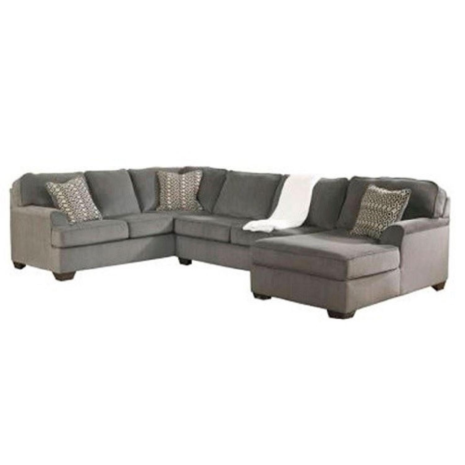 Seller's Notes:Ashley Furniture"Loric-Smoke" 3-Piece Sectional 3 years old... EXCELLENT Condition... Chenille & stain resistant fabric. COMFORTABLE and can fit many people. Piece has been in storage unit, too large for new apartment. Dimensions : Sofa Sectional: 88" W x 39" D x 38" H Armless Loveseat Sectional: 62" W x 39" D x 38" H Corner Chaise: 36" W x 62" D x 38" H
