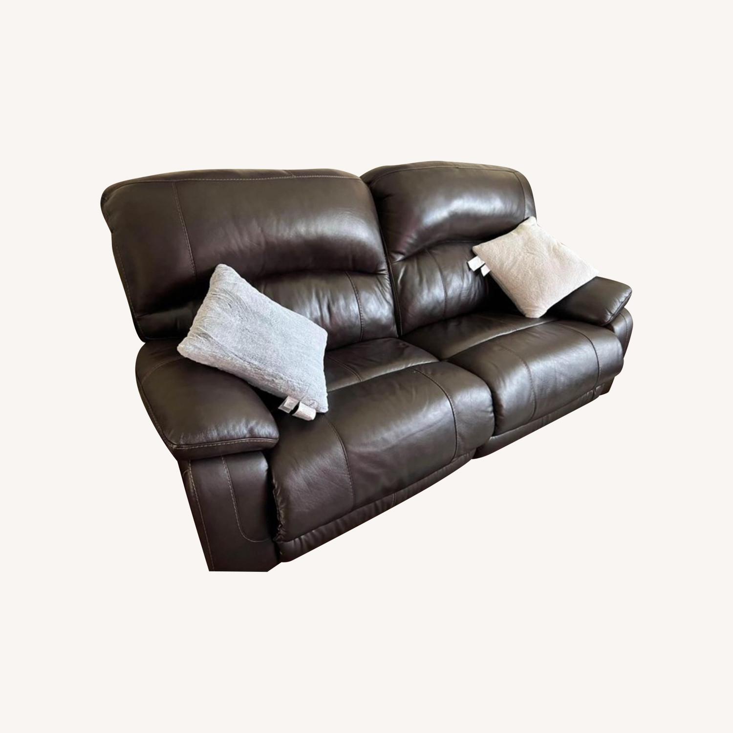 Seller's Notes:Plush cushions are wrapped in leather interior upholstery and a matching faux leather exterior. Easily lean back into luxurious comfort with the pull tab reclining motion