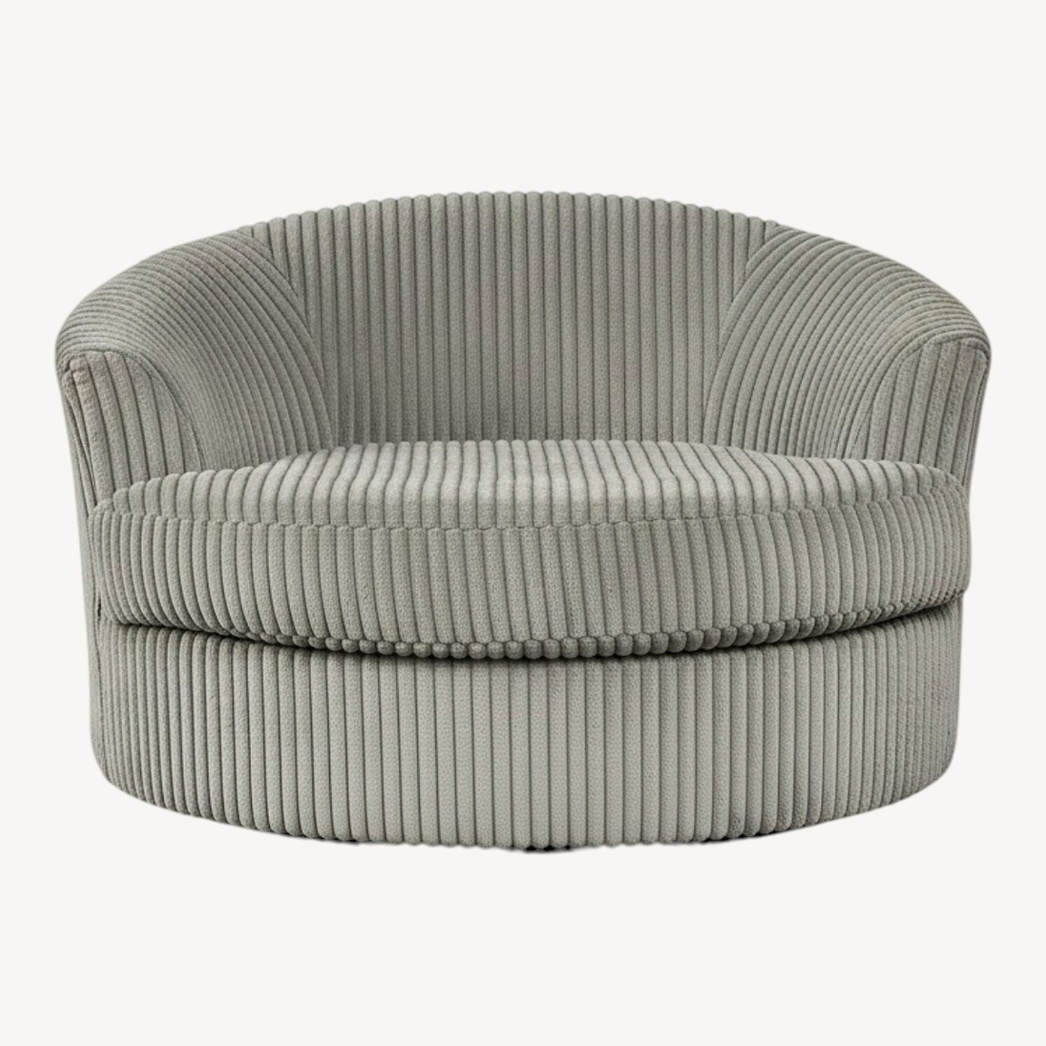 Plush and posh. Showcase your eye for on-trend texture with the statement-making cord upholstery of the Lindyn oversized swivel accent chair. Its stunningly soft fabric entices in a warm neutral hue, complementing contemporary color palettes. Sink into the spacious cushion and plan to stay a while—this cozy living room chair highlights your high-end approach to comfort and style.