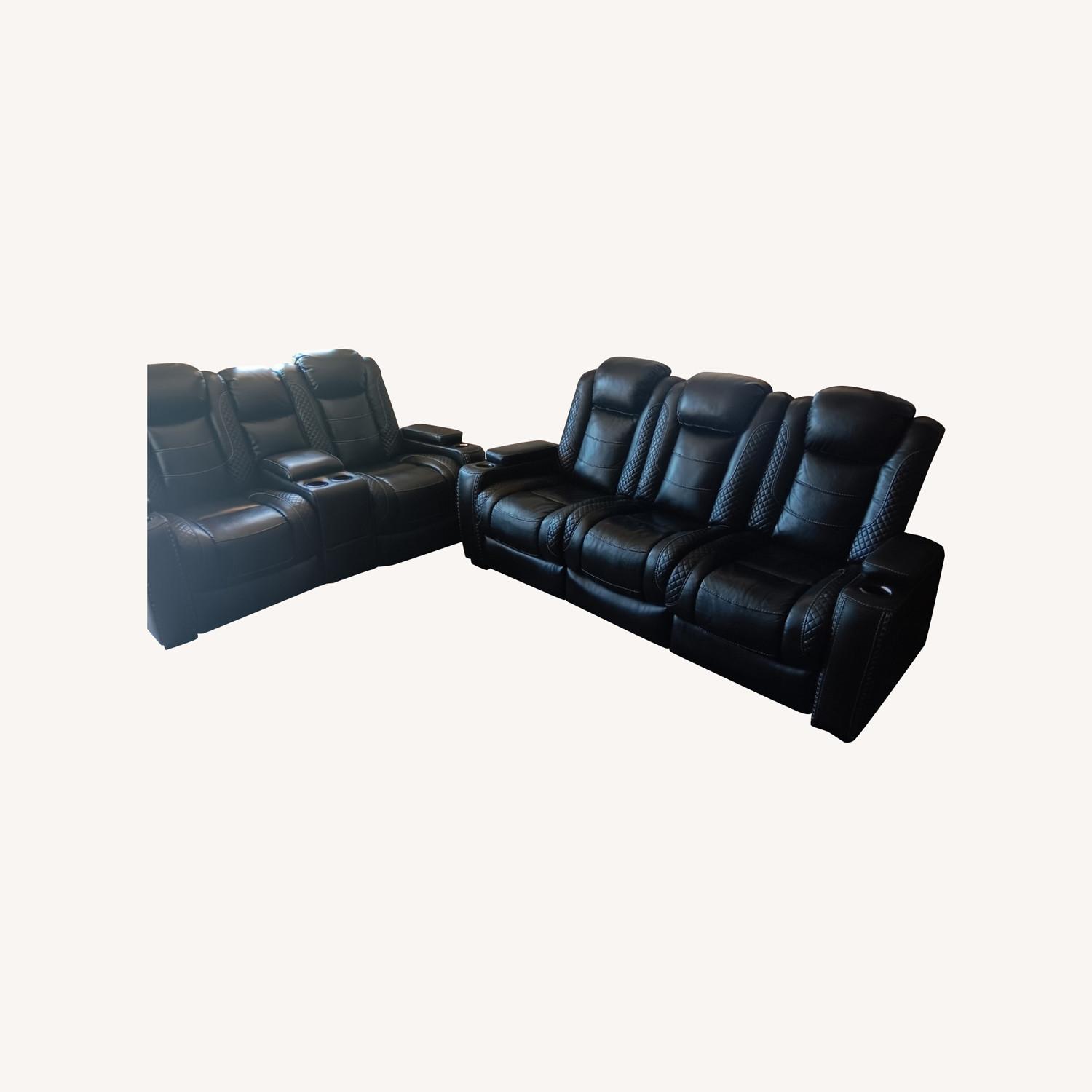 Seller's Notes:Selling my Ashley theater chairs. It has a few blemishes cat scratches and 1 cig burn. Barely noticeable all lightning works recliner is awesome and it has all the connection USB plugs on recliner and center console.