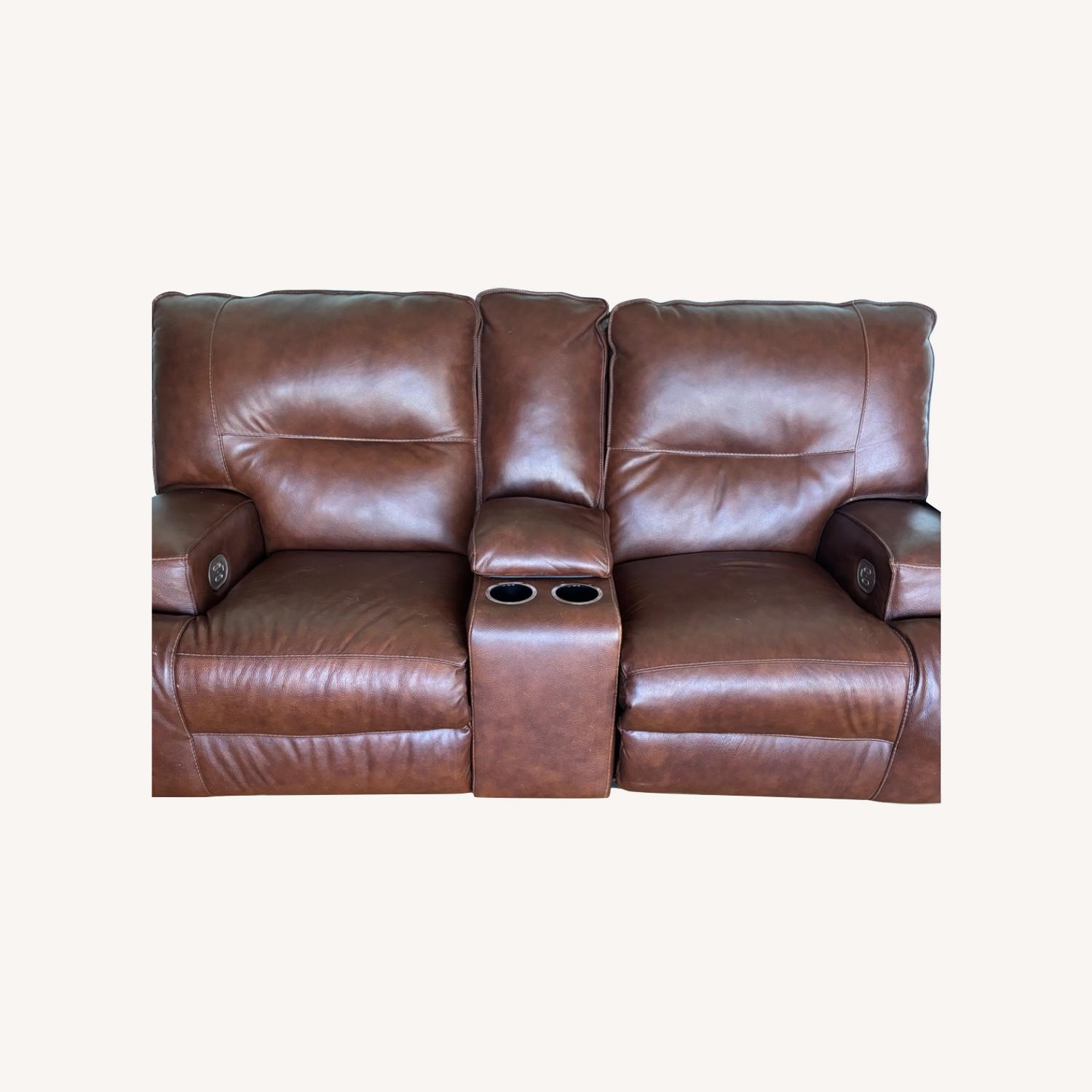 Seller's Notes:Power reclining loveseat from Signature Design by Ashley, purchased new approximately 1.5–2 years ago. Gently used and well cared for in a smoke-free home. Features include dual power recline, center console with storage, cup holders, and built-in USB charging ports. Upholstery is in very good condition with no rips, stains, or damage — only light, normal wear.
