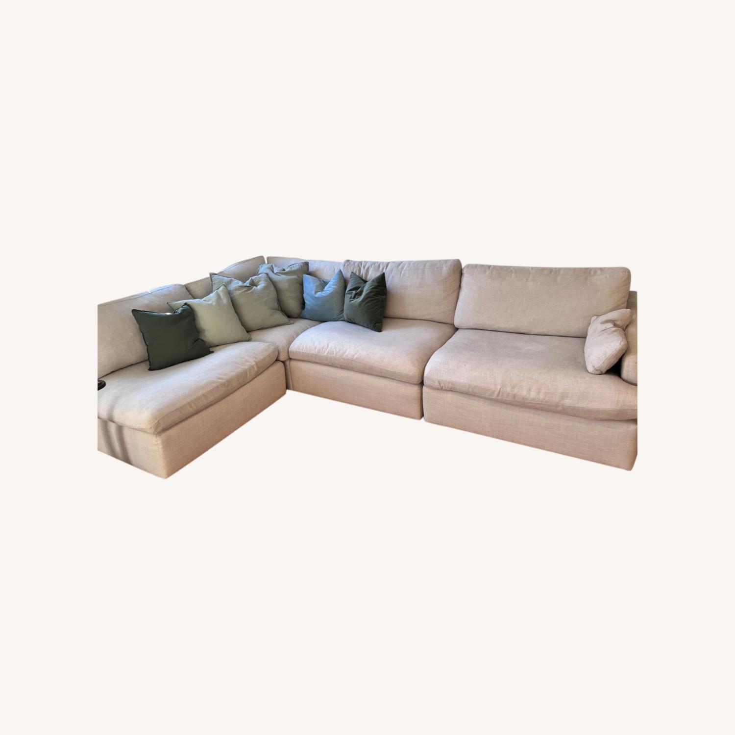 Seller's Notes:Stunning sofa!super comfy. Only 6 months old, only 2 people have sat on this sofa. Removable Covers that are machine washable! All pieces are modular not connected at base! Only reason we are selling is because it’s too big for our space and the retailer will not let us return it. We bought it on a Saturday without thinking! We are expecting a little one and really need the space. Different life now!