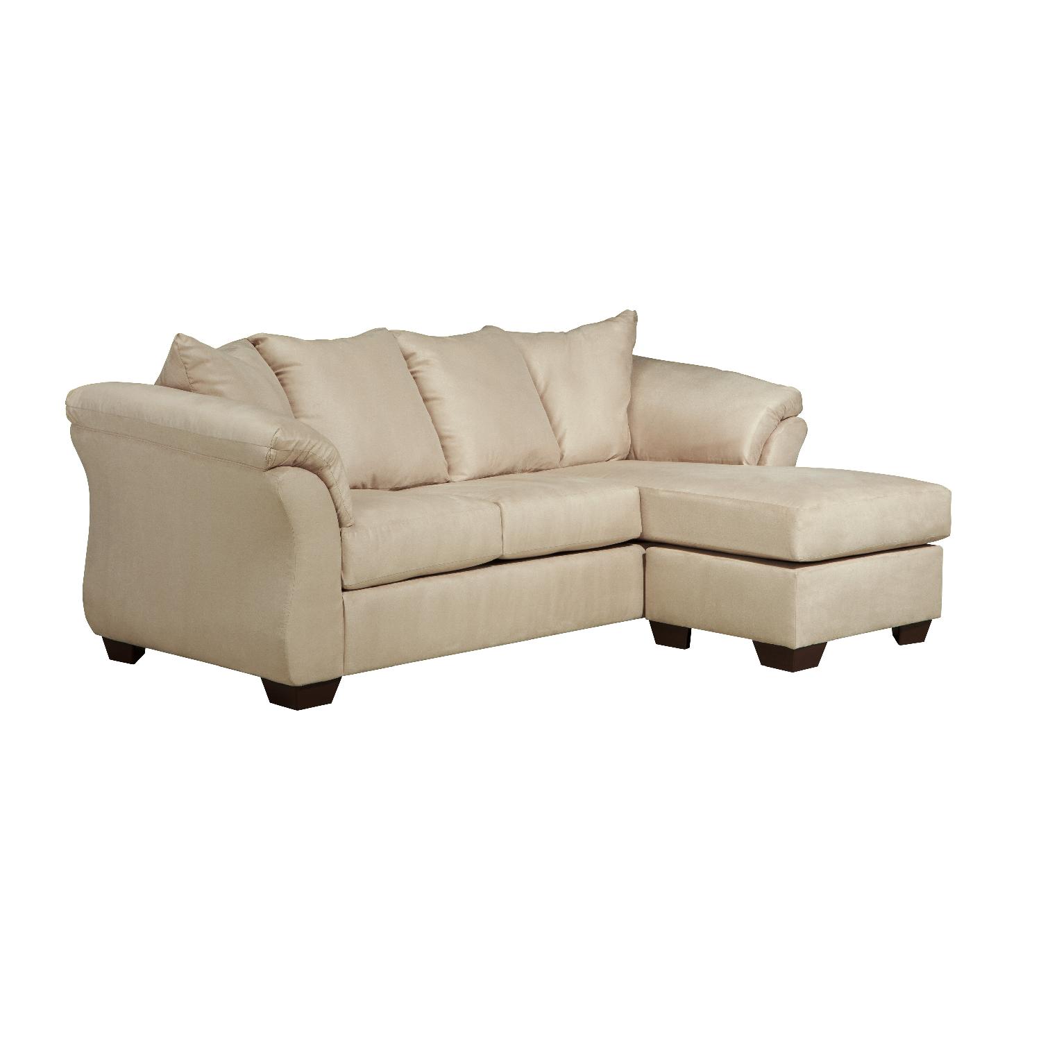 Seller's Notes:Talk about fine lines and great curves. That's the beauty of the Darcy sofa chaise -- made to suit your appreciation for clean, contemporary style. A striking flared frame, comfy pillow top armrests and an ultra-soft upholstery that holds up to everyday living complete this fashion statement. Versatile chaise has reversible cushion and can be used on right or left arm side. Features:- * Frame constructions have been rigorously tested to simulate the home and transportation environments for improved durability * Corners are glued, blocked and stapled * Seats and back spring rails are cut from 7/8" hardwood * All fabrics are pre-approved for wear-ability and durability against AHFA standards * Cushion cores are constructed of low melt fiber wrapped over high quality foam