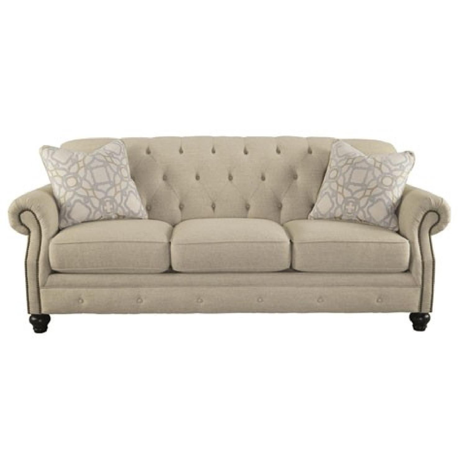 Seller's Notes:This sofa is a brand new sofa. It comes in its original packaging. Its never been opened. These are the only pictures I have of this sofa because it comes in the packaging. Kieran brings a traditional favorite—the diamond tufted back sofa—back in vogue in the most charming way. Subtle textured twill upholstery in the softest of hues is the essence of a simpler time and place.