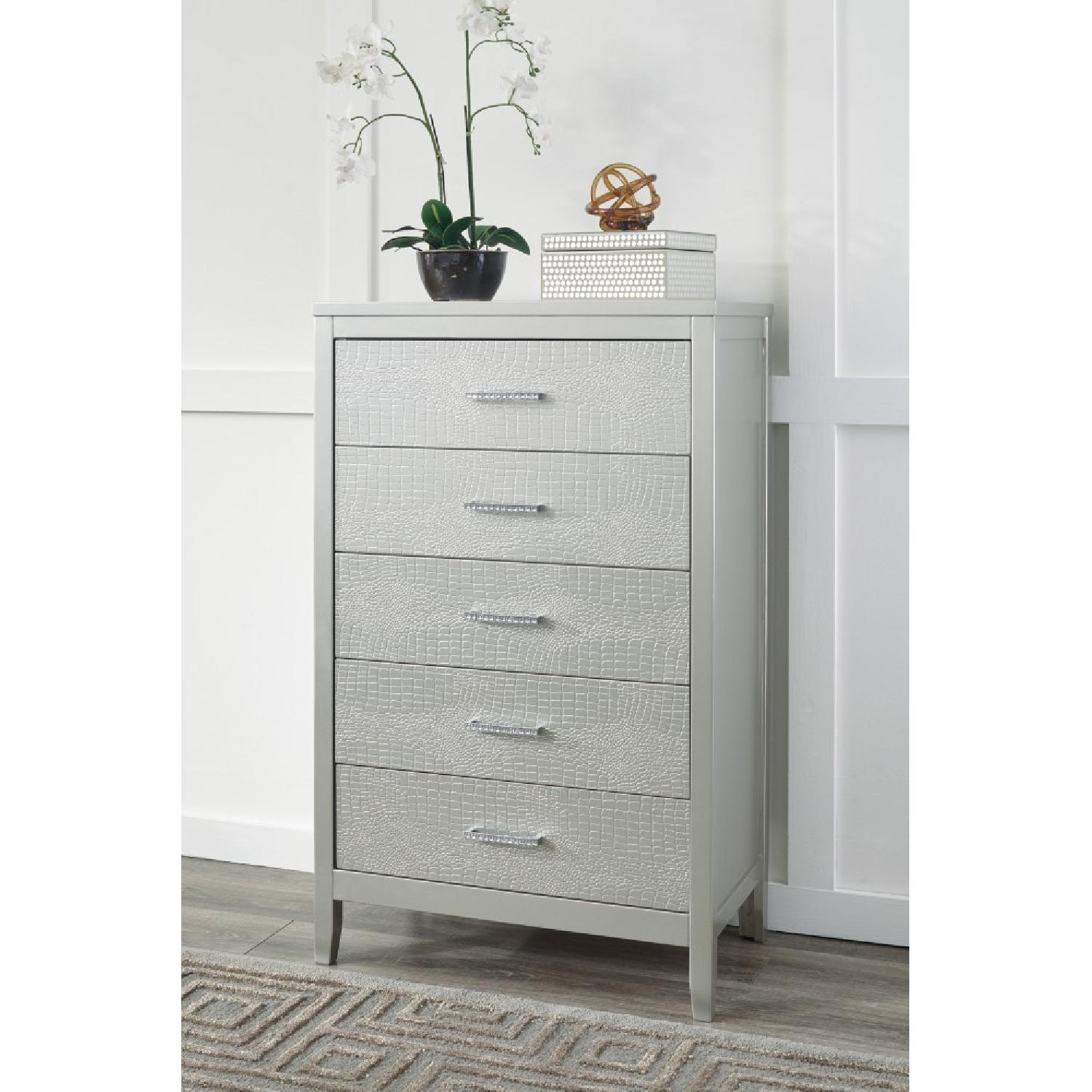Ashley's Olivet Five Drawer Chest in Silver