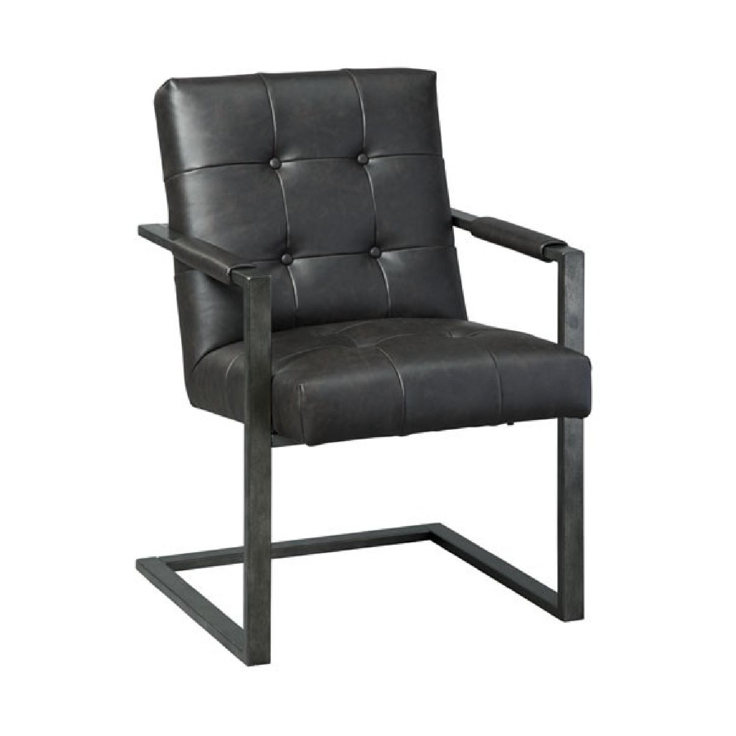Seller's Notes:This chair comes brand new in the box. it needs to be assembled. we can assemble it for you and have it ready for delivery, but we would need to be told at least 2 days before the delivery date. For fans of urban industrial design, the Starmore chair steals the show. Chair’s metal C-frame in a blackened gunmetal finish is sleek, sculptural and ultra modern. Crafted for looks and comfort, the tufted box seat, wrapped in a “weathered” faux leather upholstery, is loaded with retro chic flair. Whether paired with Starmore’s home office desk or dining room table, it’s a feast for the eyes. More Dimensions: Seat 19.50" x 18.50" Seat height 19.00" Arm height 25.50" Distance between arms 19.75"