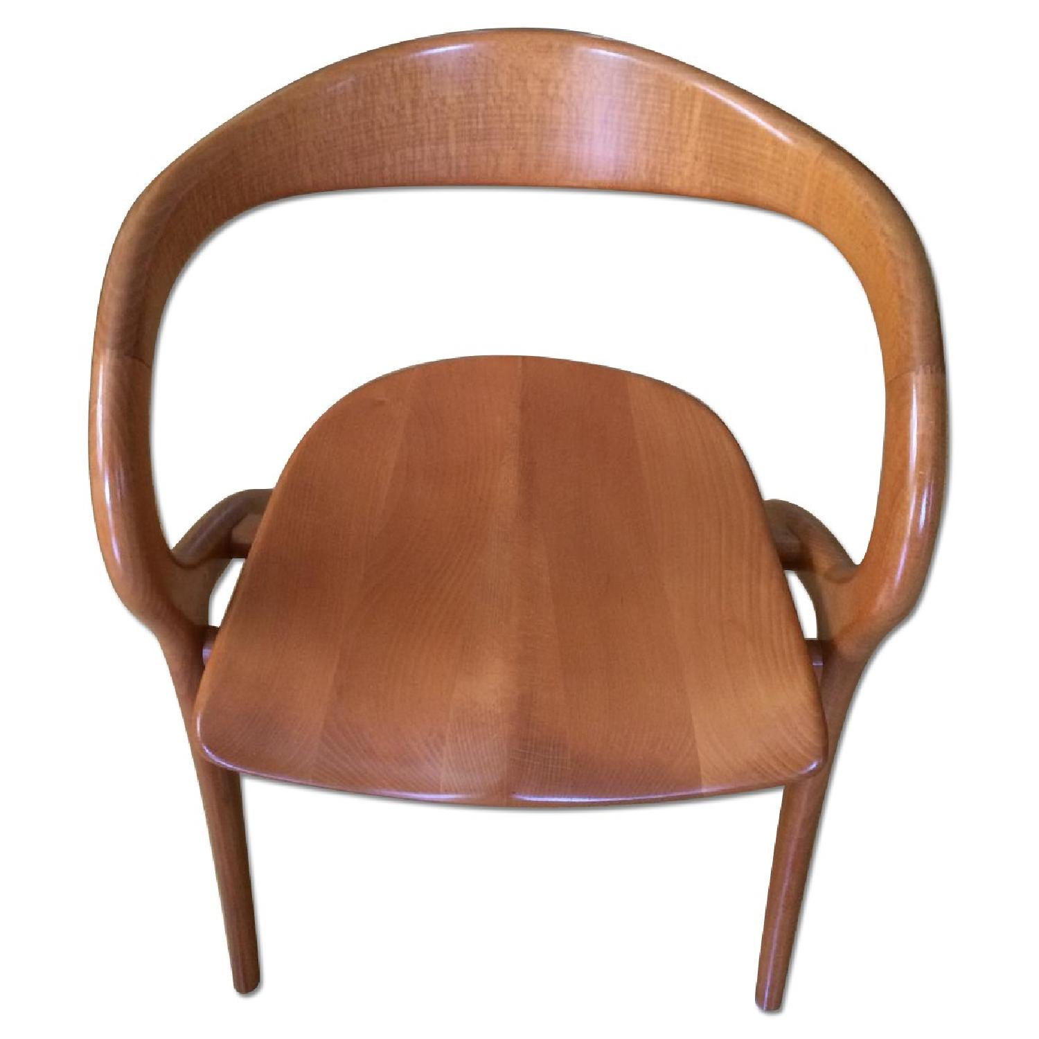 Seller's Notes:Beautiful 6 Chairs: 20 1/2" W x 17 1/2" D ( 20" leg to leg) x 18" H(seat) or 30" from the floor to the top of back rest. This vintage chairs are done by Italian artist A. Sibau. They are made out of SOLID CHERRYWOOD. Original price for the set was $5700 or $950 per chair. I'm selling them $500 per chair. You can check pricing for pair of these chairs on https://www.1stdibs.com/furniture/seating/side-chairs/pair-of-italian-sculptural-chairs-sibau/id-f_1325196/ These chairs were bought as a set with dining table (see listing for VINTAGE OVAL GLASS DINING TABLE(CIRCA 1990)) and Etagere (see listing for VINTAGE GLASS AND CHERRYWOOD ETAGERE (CIRCA 1990)) The Italian company A. Sibau produced this design in 1980. These distinctive modern chairs are quite comfortable and will provide extra seating wherever you may need it. The open, sculpted cherry wood design will enhance any decor. The chairs are in excellent vintage condition. Here are matching table: https://www.aptdeco.com/catalog/vintage-circa-1990-oval-glass-dining-table and etagere: https://www.aptdeco.com/catalog/vintage-circa-1990-glass-and-cherrywood-etagere