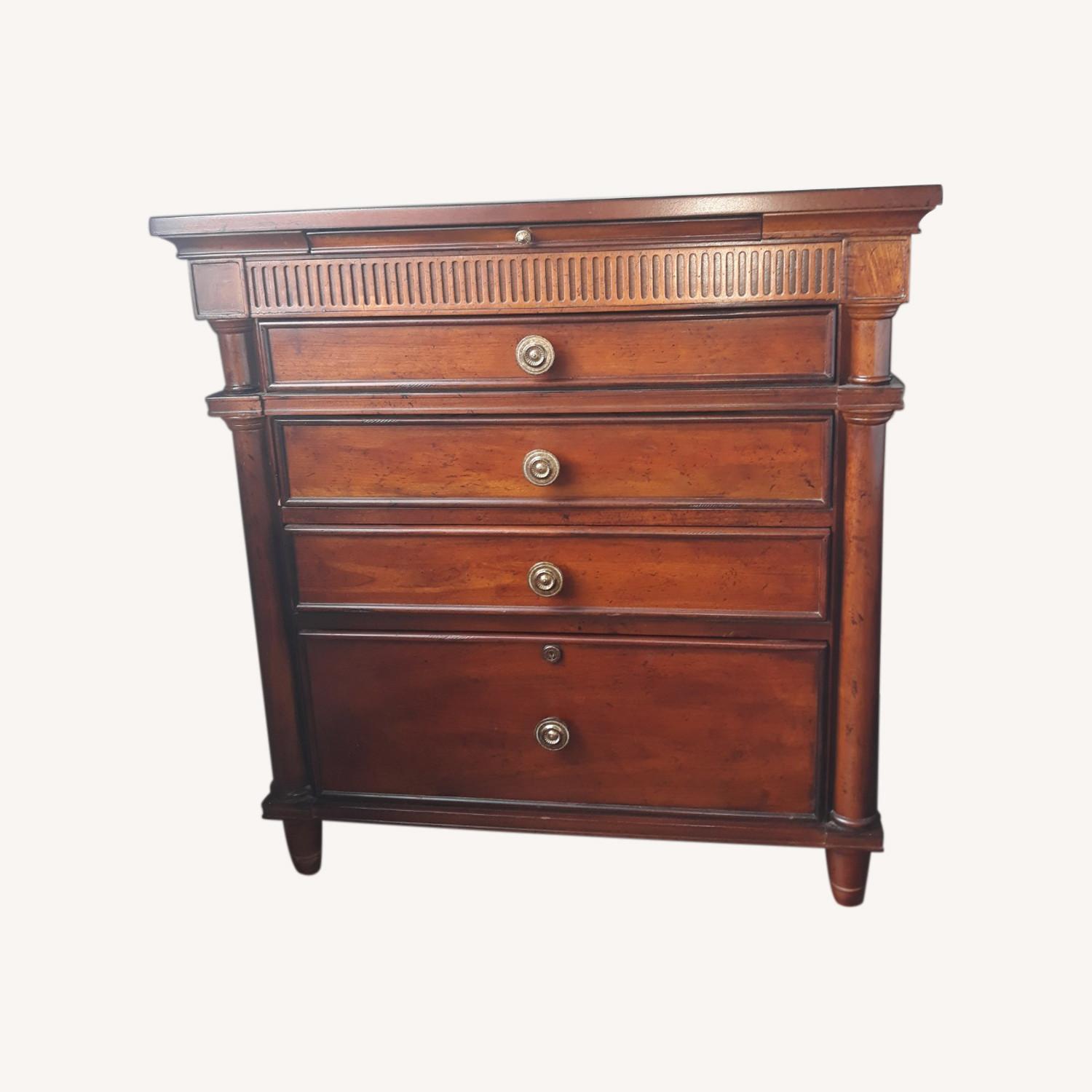Seller's Notes:This nightstand has a lot of features. There is a pull out tray, four drawers, cords for charging, dividers in the upper drawers and one larger drawer on the bottom. We are moving and the bed (also listed) will be too long for our bedroom so we are selling both.