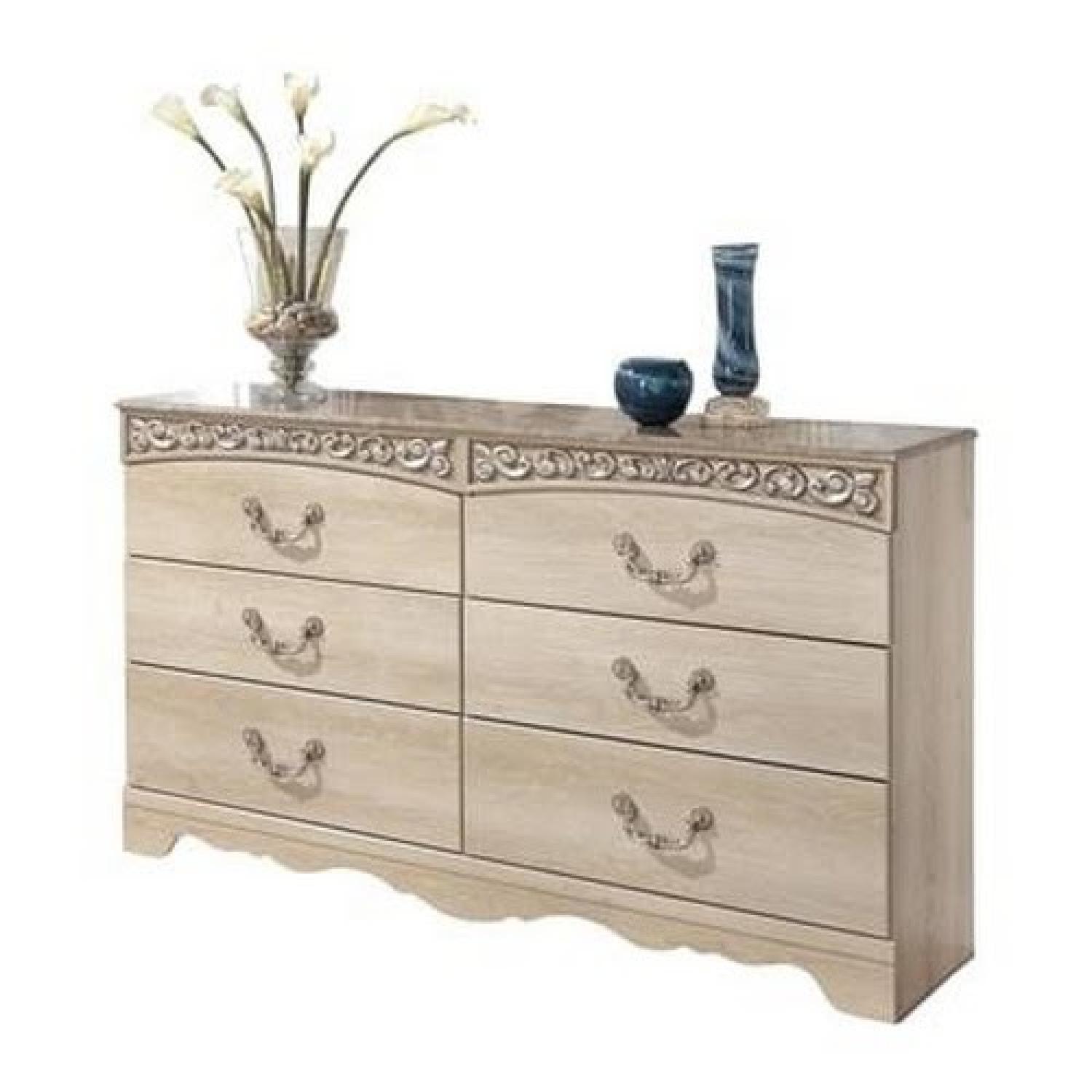 Seller's Notes:6 Drawer Double Dresser NO MIRROR (bottom drawer is broken off track, but not noticeable when closed).