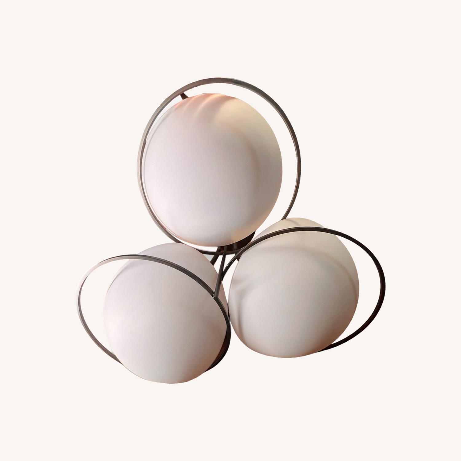 Seller's Notes:Ceiling light purchased at Lee's Studio in NY, NY for $390 (including tax) in May 2015. Light is in excellent condition except for a couple interior small black dots that to my eye cannot be seen when light is mounted to ceiling (see images). As you can see from the pictures, these lights are great for hanging decorations for holidays! Unfortunately, I'm changing my apartment to LED overhead lights and this item, which I love, doesn't match. Ceiling light is part of a set of 3 overhead lights of similar style (all are listed, see my other listings to create a set of lights). Installed in my apartment above the kitchen table since delivery in May 2015, and have worked perfectly. Dimmable. Semi-flush. About 18" diameter and 13" to 14" from the ceiling the bottom of the three light shades (by my measurement once taken down). See pictures for a variety of angles and images with lights turned on and off, installed and taken down. Suitable in a damp location. Lightbulb max is 100W Type A15. Hubbardton Forge is a Modern American Blacksmith brand based in Vermont. Excellent reputation and quality! I can send a copy of the limited lifetime warranty from Hubbardton Forge to purchaser, but it's a warranty to the original purchaser. I'm not a frequent AptDeco seller. I keep most things until they're in a donation-only state. But I do sell on Kidizen (81 sales and counting over almost 3 years, and ranks as a 5-star seller). You can find me there under "Angel Wings" (discount code for first time buyers https://get.kidizen.com/jba7o).