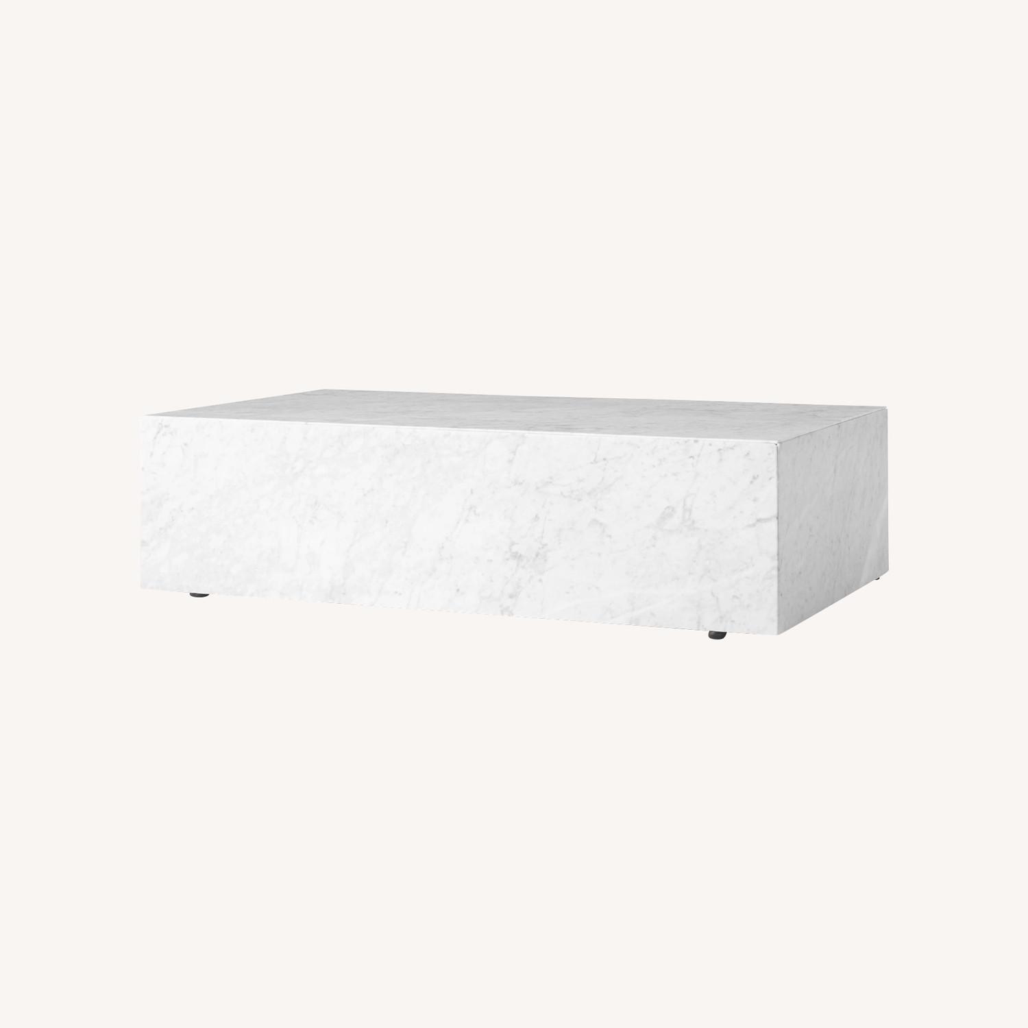 Seller's Notes:Two years old. Local deliveries to NYC. This coffee table is substantial and a beautiful conversation piece. Overall Dimensions: 39.4 in W x 23.6 in D x 10.6 in H Product Weight: 180.78 lbs. Description Versatile and timeless, the Plinth Low Coffee Table by Menu Design now Audo Copenhagen is beautiful, sculptural design that highlights whatever objects rest upon it. With no two pieces exactly alike, the naturalness of the marble creates an intriguing contrast within each piece. Perfect accenting a seating group, the spacious surface is ready to hold designer coffee table books, favorite candles, and decor pieces from your travels abroad. Highlights Marble is a natural material that will have varying marbling patterns from product-to-product. Because of natural veining, no two tables will be exactly alike Handcrafted by master craftsmen in Portugal Table is hollow to make it easier to move Designed by Norm Architects