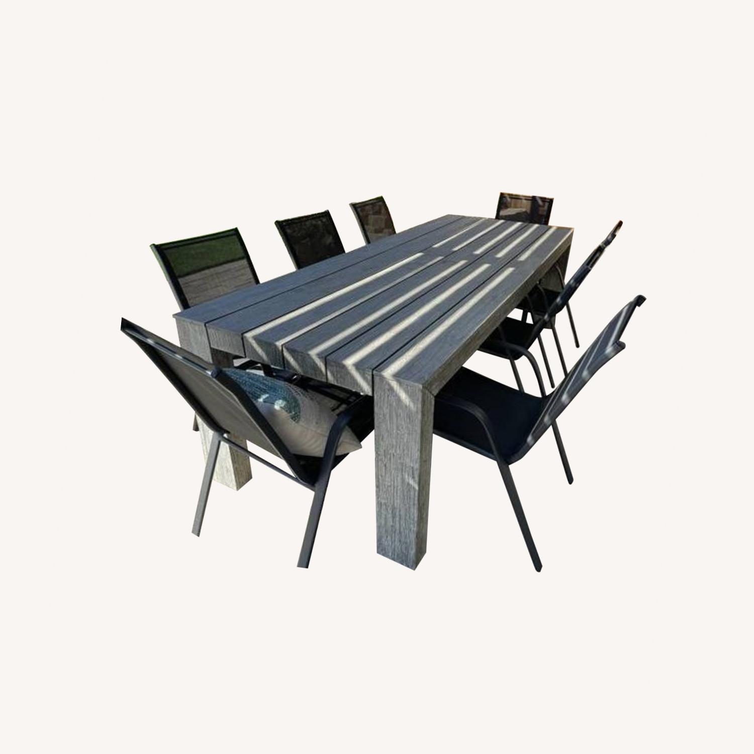Seller's Notes:We bought this table and chair set brand new just over a year ago. Purchased from the company Article. See pictures for exact dimensions and materials (table is 100% Acacia wood) This set comes with 10 black weather resistant chairs
