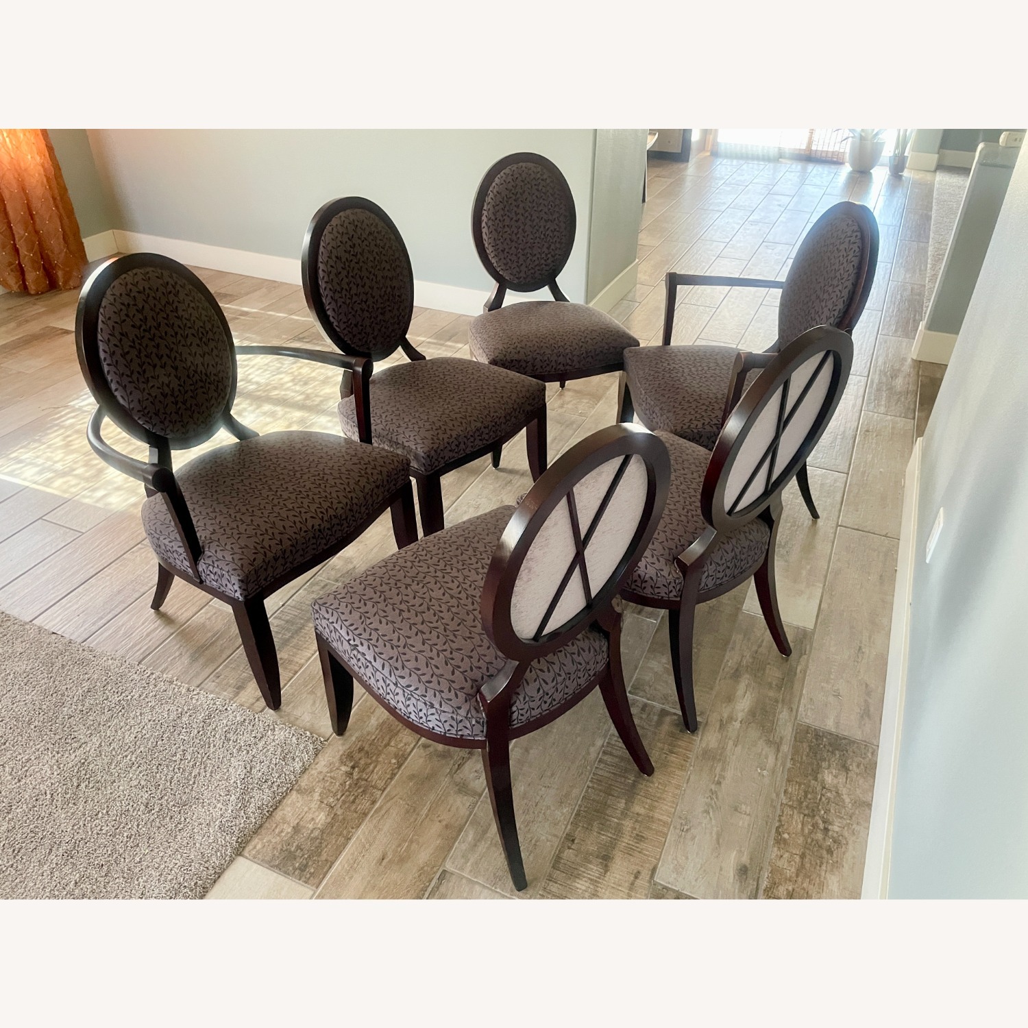 Seller's Notes:Hello. At this point...It's clear that I'm taking a significant financial loss to the benefit of the buyer. Barbara Barry for Baker – Set of 6 Oval X-Back Dining Chairs | Java Finish Authentic, Designer Elegance • Heirloom Quality • Retail Value: $31,836 + tax (Thirty-One-Thousand-Eight Hundred-Thirty-Six). EACH CHAIR includes an Official Authenticity brass Plate and Certificate from the renowned Baker Furniture Company! Bring timeless sophistication to your dining room with this authentic set of 6 dining chairs from the Barbara Barry Collection for Baker Furniture — a name synonymous with luxury and fine craftsmanship. Purple and lilac is the color of ROYALTY! This designer set includes: • 4 Side Chairs (armless) • 2 Armchairs – All chairs are in excellent LIKE-NEW condition, except one arm chair need to be secured (see photo), so that's the reason this set is drastically reduced. The arm chair that needs to be repaired is the ONLY chair of this set that was ever sat on or used. Please contact Baker Furniture or a reputable upholsterer for the repair. Only one arm chair is worn and needs repair, the other arm chair is perfect! Crafted from solid beech hardwood in a rich Java finish, each chair features Barbara Barry’s signature oval X-back design — an elegant fusion of classic form and modern lines. Each piece features the hallmark oval X-back design, a stunning silhouette that balances classic refinement with contemporary grace. This is a rare opportunity to own high-end Baker furniture at a fraction of the original price. Whether adding to your current dining set or investing in a designer piece, this Barbara Barry Oval X-Back Chair is sure to enhance any interior. Product Highlights • Designer: Barbara Barry • Brand: Baker Furniture • Collection: Barbara Barry – Oval X-Back Dining • Finish: Deep Java on solid beech hardwood • Upholstery: Padded seat and inset upholstered back for enhanced comfort • Signature Design: Oval back with Barbara Barry's signature “X” back motif • Category: Dining Room / Kitchen • Style: Transitional elegance – works with modern, traditional, or classic interiors ✨ Design Features: • Elegant oval back with the signature Barbara Barry X-back detail • Expertly crafted from solid beech hardwood in a rich Java finish • Inset upholstered back and cushioned seat for exceptional comfort • Exudes classic elegance with modern sophistication • Ideal for formal dining, stylish kitchen seating, or statement side chair use Dimensions (each chair): • Width: 23" (58.4 cm) • Depth: 24" (61 cm) • Height: 38.5" (97.8 cm) • Seat Height: 19.5" (49.5 cm) Condition • 4 Side Chairs – Excellent / Like-New Condition • 1 Armchair – Excellent Condition • 1 Armchair – Needs repair to one arm (price adjusted accordingly) • All chairs stored in a smoke-free, pet-free, child-free environment Pricing • Side Chairs (4 total) – Priced together • Buy the complete set of 6 for a stunning designer dining ensemble (Retail price: $4,349 per armless chair and 2 arm chairs retail at $7,220 + Total Retail Value: $31,836 + tax) Why You'll Love Them Perfect for entertaining or everyday elegance, these chairs offer luxury, comfort, and sophistication in every detail. Whether flanking a fine dining table or used as stylish accent chairs, this heirloom-quality set makes a bold and beautiful statement. This set is valued over $31,836. Own a designer dining set that transcends trends — perfect for hosting elegant dinners, creating a stylish breakfast nook, or anchoring a sophisticated dining room Number of Chairs 6 Designer Barbara Barry Period 2000 - 2009 Country of Origin United States Item Type- Vintage, Antique or Pre-owned Materials Beech Brass Finish Condition Original Condition Unaltered, one arm chair has imperfection