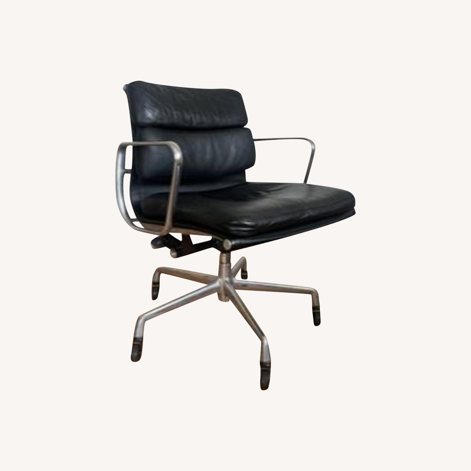 Seller's Notes:Highly collectible authentic Eames Soft Pad Management Chairs for sale. Purchased in excellent vintage condition. Typical signs of age, which just make them even more beautiful. They have been used at an interior design studio for the last 2 years. Please note, these are VINTAGE condition, meaning there are light scratches, worn leather, etc throughout. They are incredibly comfortable and in full working order. The retail for $3700 each new at DWR. Vintage ones are typically priced in the $1400 - $2200 range. Color: black leather and chrome Detail: height is adjustable and on fully working casters. Priced individually