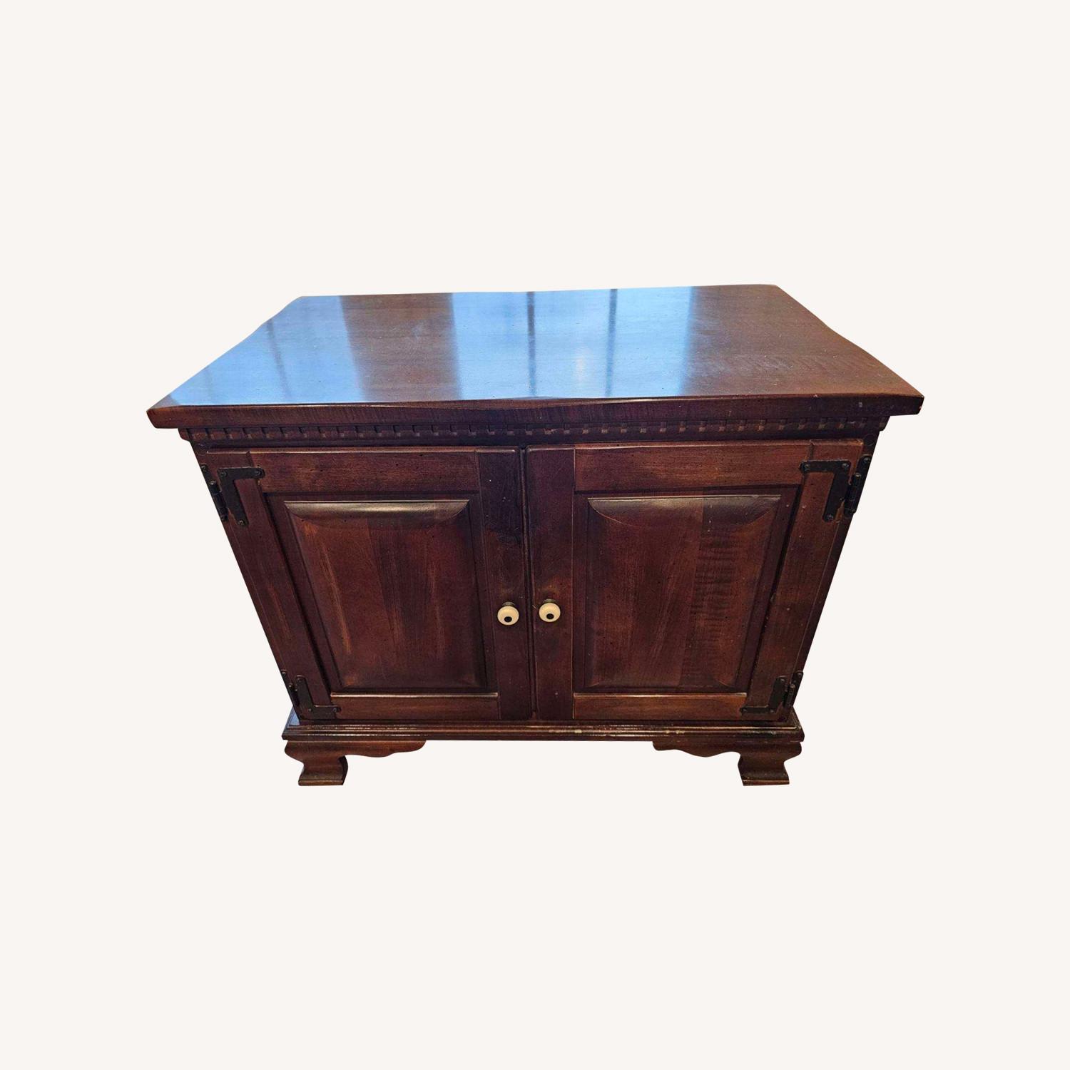 Seller's Notes:Classic wooden cabinet, exuding timeless charm and constructed with exceptional craftsmanship. This piece features a rich, deep wood finish that highlights the natural grain, giving it a warm, inviting look. The traditional design is complemented by intricate detailing along the edges, adding an element of sophistication. The sturdy build and practical size make it a versatile addition to any room, perfect for storing your cherished items with elegance. Whether placed in a cozy corner or as a centerpiece, this cabinet is sure to enrich your home with its enduring beauty. Its rich patina and the slightly weathered finish add to its rustic allure, inviting you to make new memories with it. Perfect for those who appreciate furniture with soul and an authentic vintage appeal.