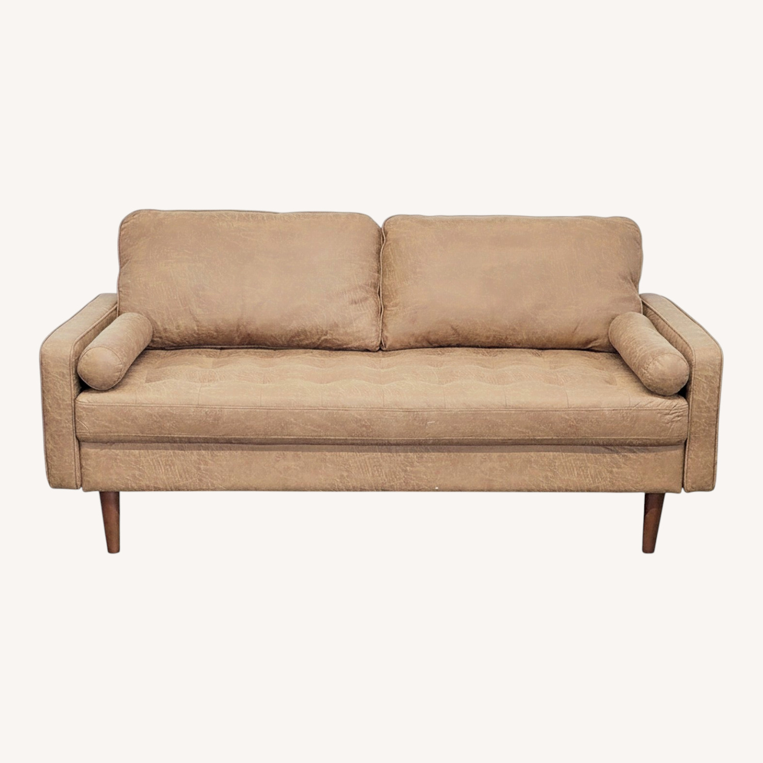Seller's Notes:Vanomi 3-Seat Sofa in Brown Faux Leather with Bolster Pillows