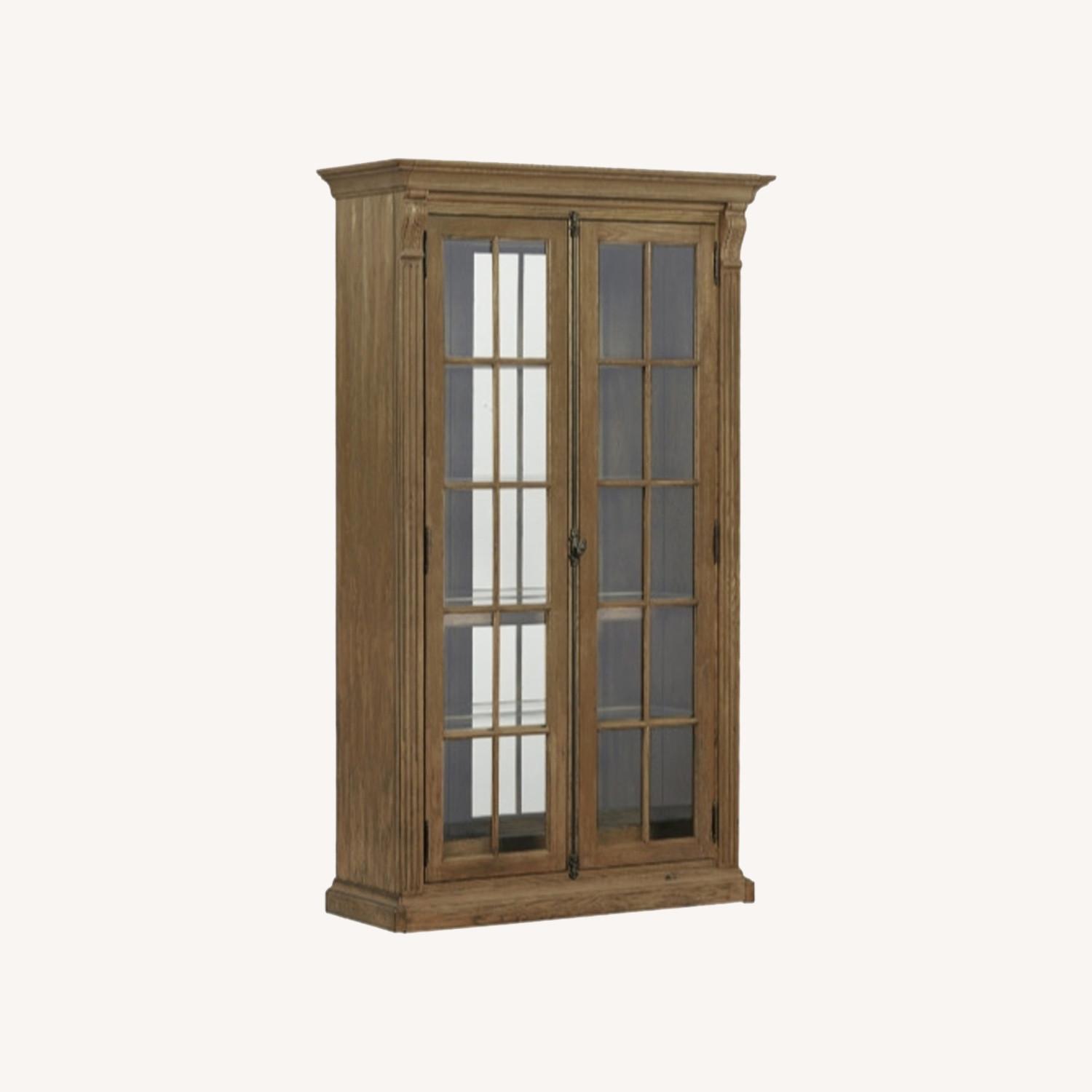 Seller's Notes:Elegant and rustic, our Avondale display cabinet brings understated beauty to your dining room or living room. Crown molding, mirrored back, window pane seeded glass and antique bronze hardware set an antique presence. A hand-applied vintage oak finish is distressed to add charm. The side molding is removable so that two or more cabinets can be displayed together to create a bunching cabinet. Waterborne finish mimics the same sheen as untreated wood Wood knots add authentic appeal Crown molding Touch lighting Mirrored back Four glass shelves with plate grooves Window pane seeded glass Antique bronze hardware Constructed of hardwood solids and oak and ash veneers Slight imperfections in the wood add to the beauty of the piece Colors may vary slightly on different monitors