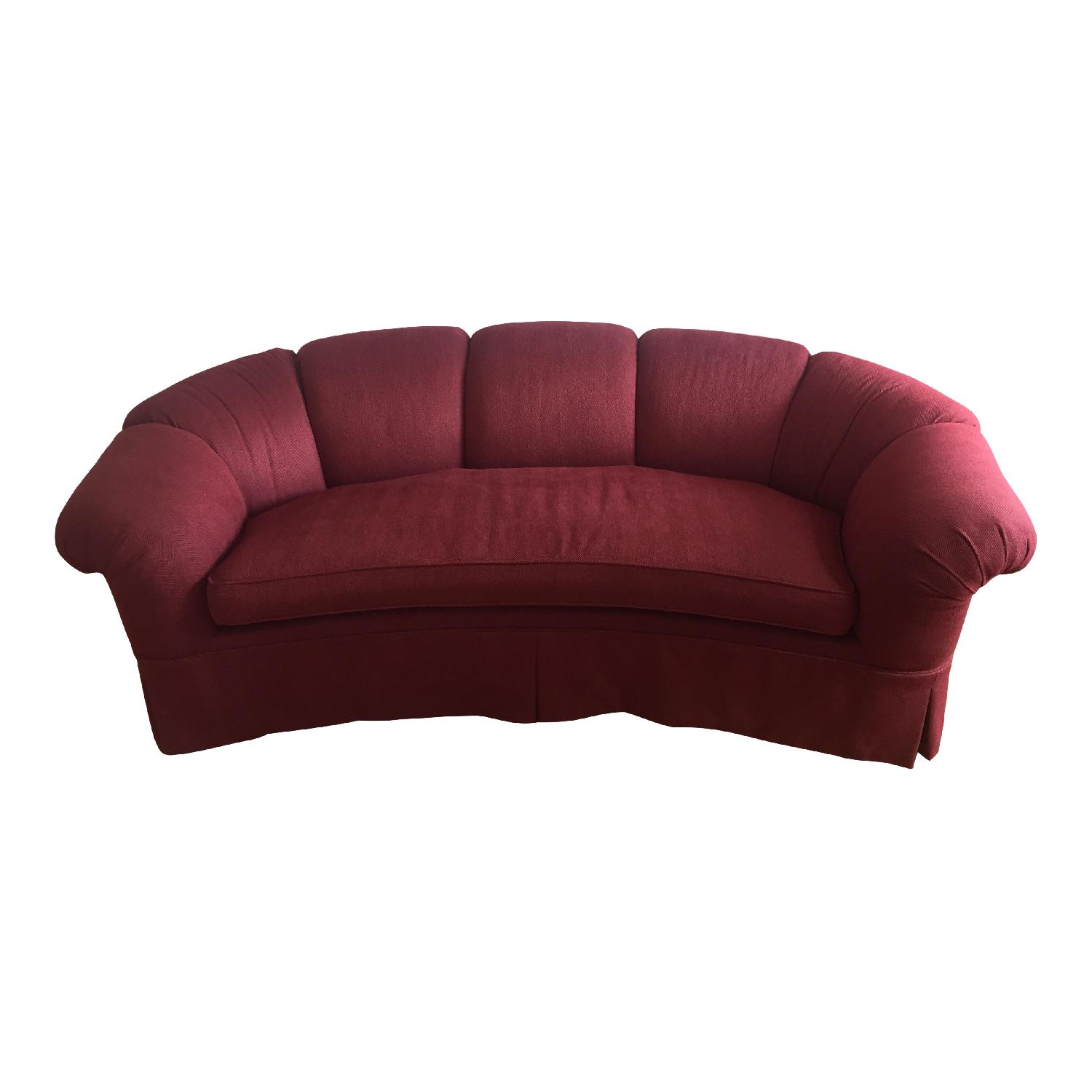 Seller's Notes:Classic custom sofa from Baker Furniture. Custom made and recently reupholstered in a rich brick red color. Tufted backrest and slightly crescent shape. Incredibly comfortable. Sadly doesn't fit in our new space and have to send it to a new loving home.
