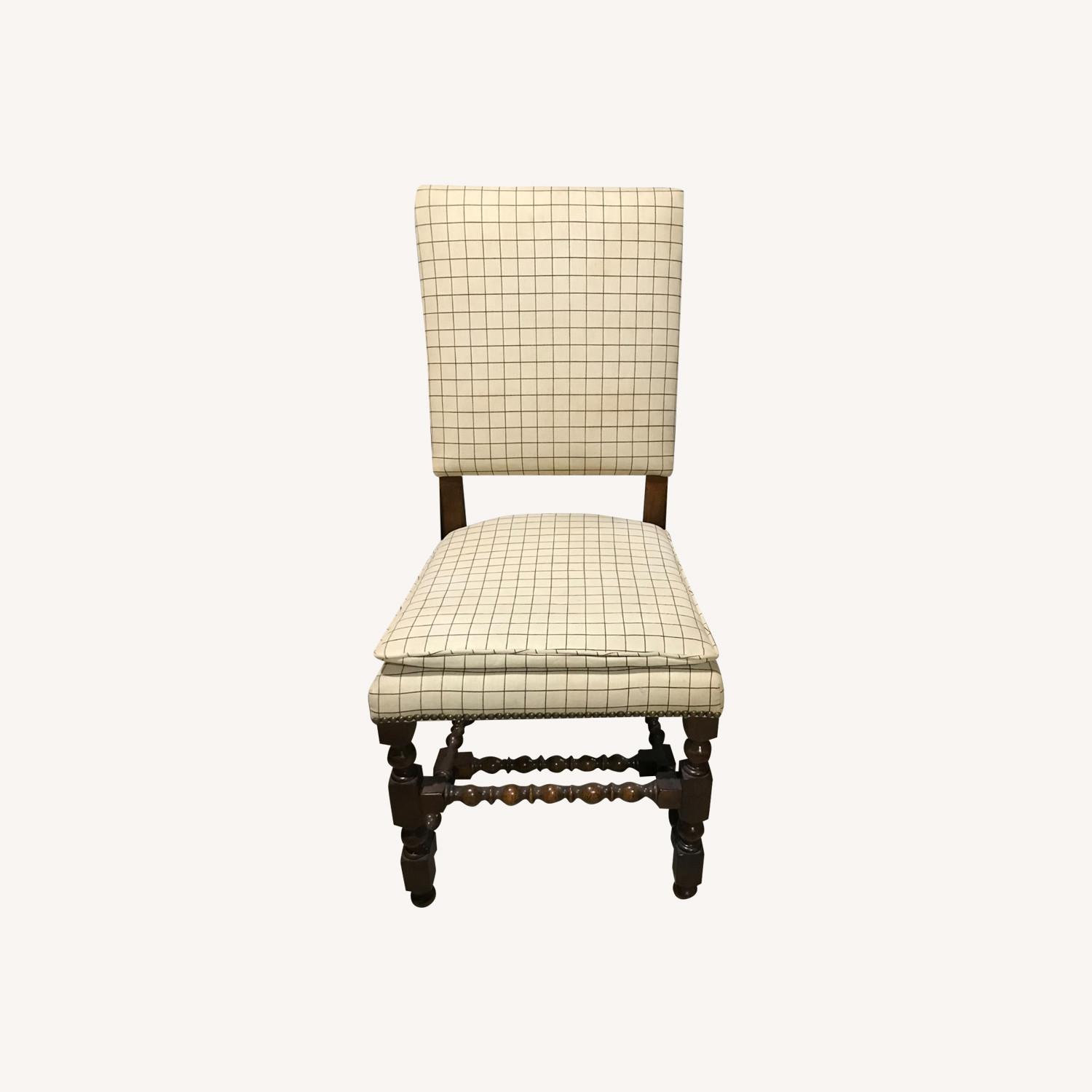 Seller's Notes:Gorgeous mahogany bobbin/turned leg authentic Baker dining chairs. Structurally in perfect condition. They need re-upholstery from sun and age (cleaning solvents, etc), hence the huge discount. They can also be covered with parson's chair slipcovers. Set of six side chairs.