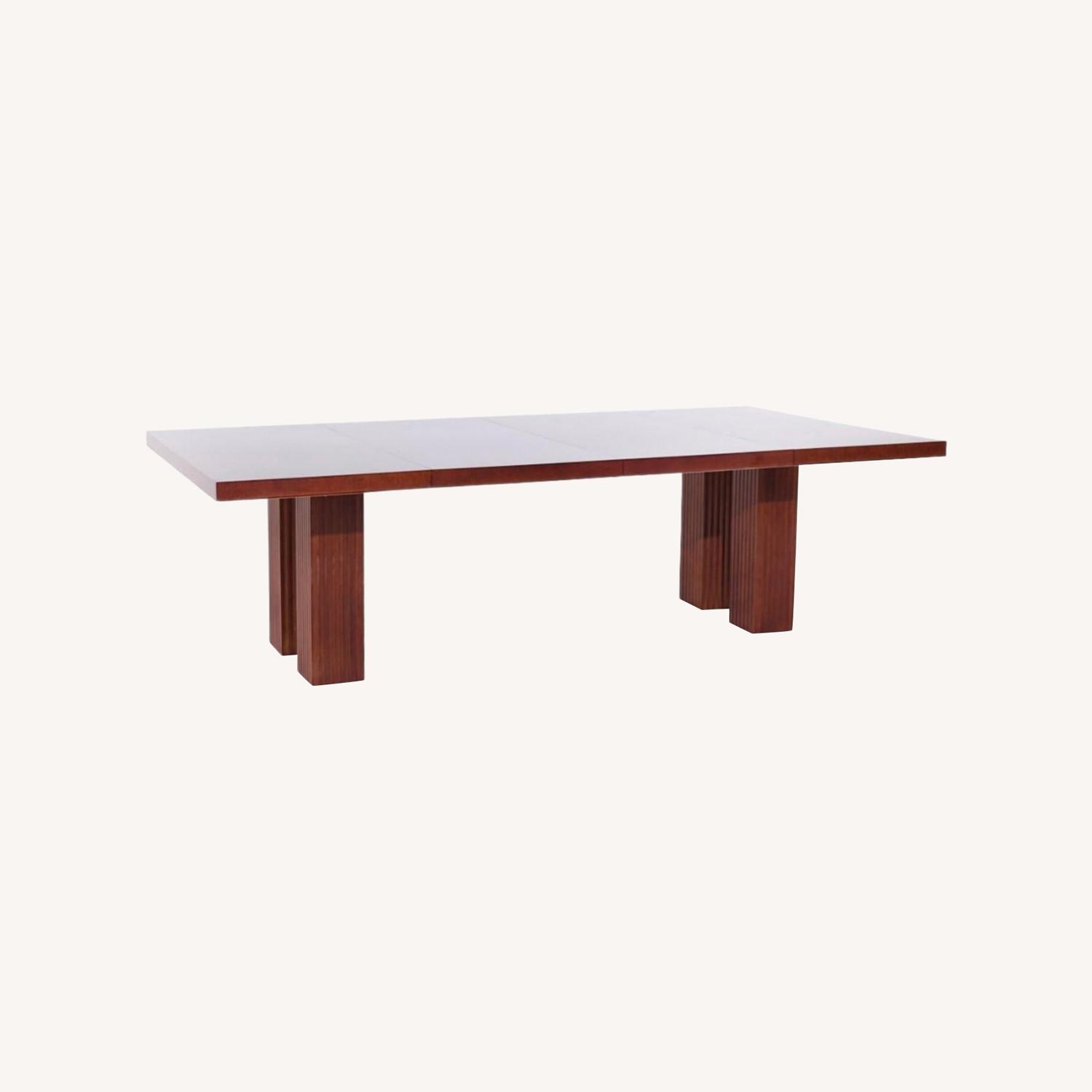 Seller's Notes:Baker Furniture Mahogany Dining Table – Michael Vanderbyl Design Authentic Michael Vanderbyl for Baker Furniture “Archetype” dining table in rich mahogany. A timeless mid-century inspired piece that’s both functional and collectible. Details: Seats: 6 comfortably, expands to 8 with 1 25” leaf Dimensions: 50”W × 50”D × 29.25”H (extends to 75” wide with one leaf) Material: Solid mahogany Style: Mid-Century Modern / Modern Classic Designer: Michael Vanderbyl for Baker Furniture Condition: Good vintage condition — consistent wear from use, solid + sturdy. Table top has normal surface wear (see photos). Extras: Matching dining chairs available separately if interested.