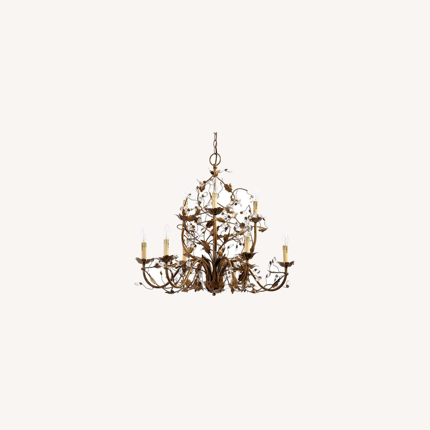 Seller's Notes:One of Ballards best selling chandeliers. Etruscan Gold metal whimsically designed with leafs and cut crystal.