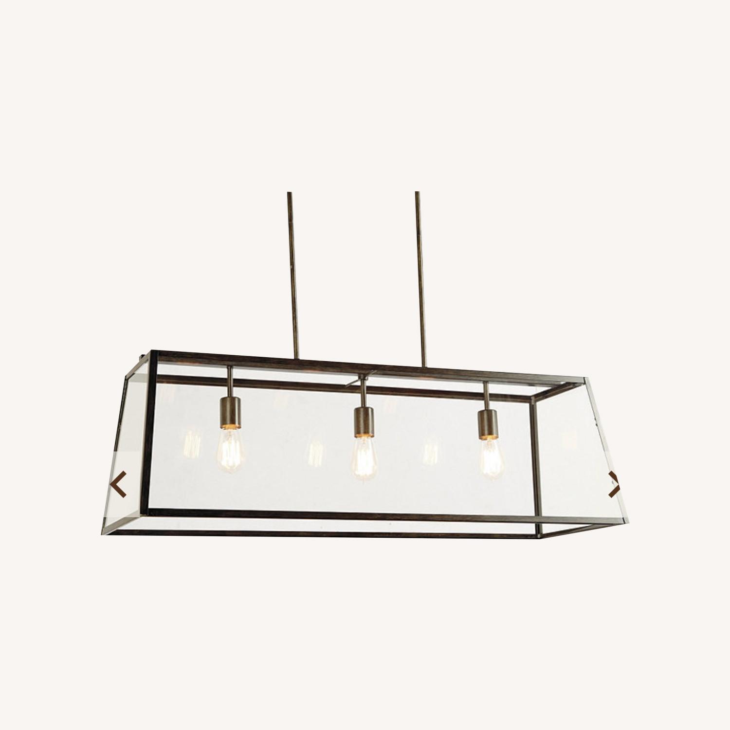 Seller's Notes:Used, like new steel and glass lighting fixture that is no longer needed after a home renovation. Perfect pendant for over a dining table! Overall dimensions: 13 1/2"H up to 55 1/2"H Drop X 40"W X 14"D Canopy: 30"W X 5"D