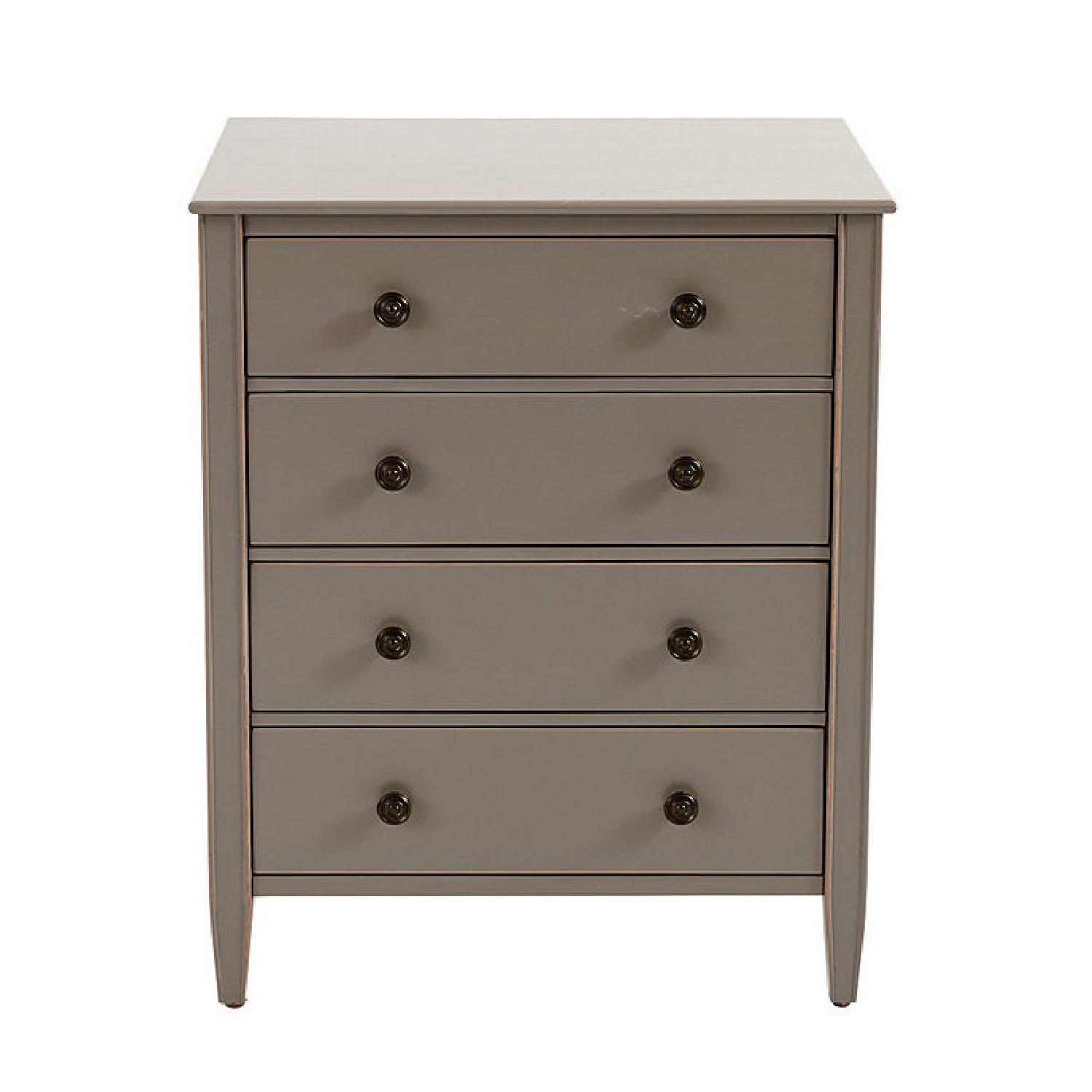 Seller's Notes:Side table with four drawers provides excellent storage and is in terrific condition. Gray finish with bronze knobs.