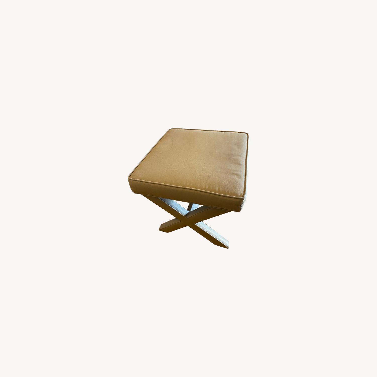 Seller's Notes:This small bench is nicely padded and fully upholstered. Great paired at the foot of a bed or as extra pull-up seating. Padded hardwood frame. Retails for $480. Small water stain.