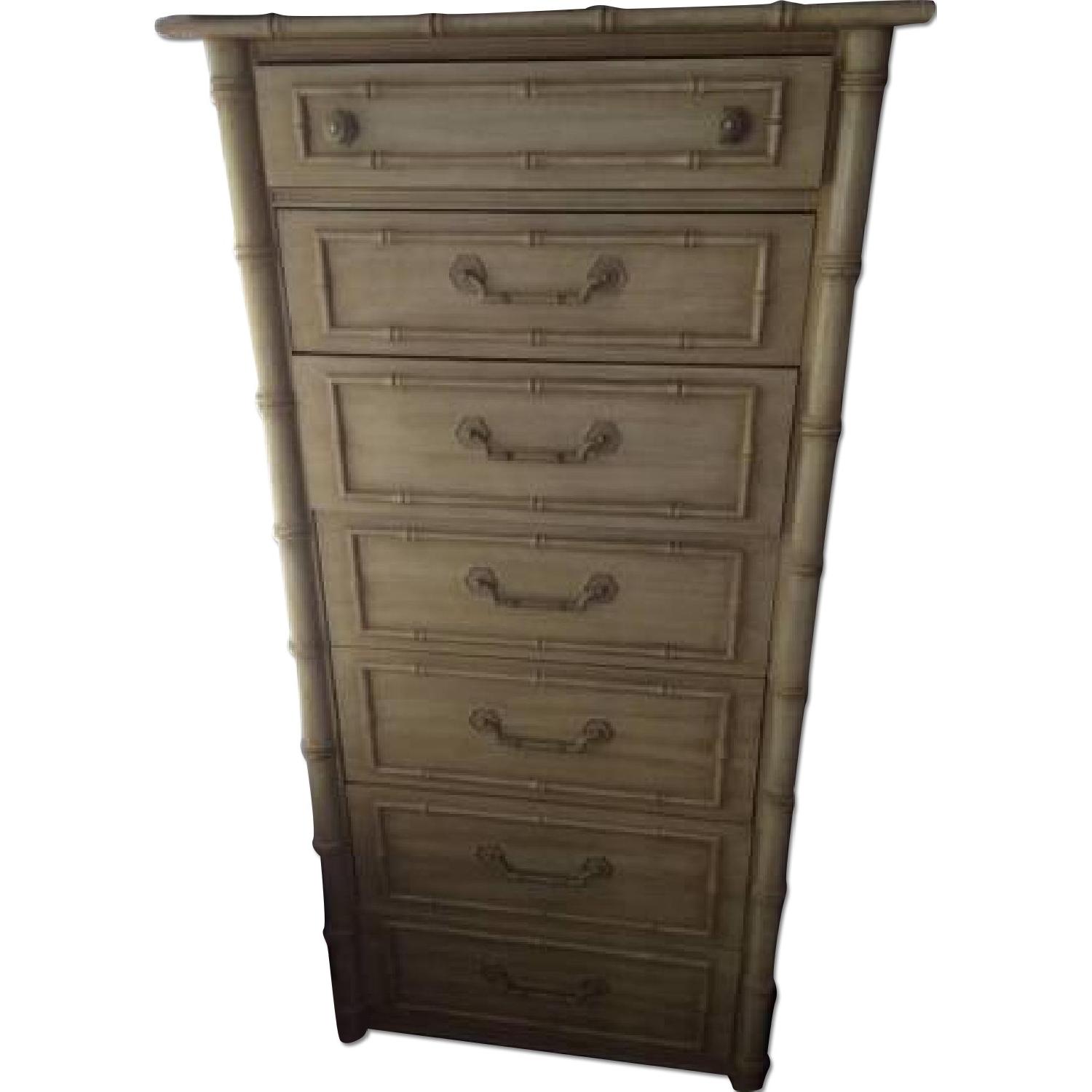 Seller's Notes:Amazing faux bamboo dresser. I don't know the designer but I saw it's matching nightstand listed for sale as an antique. I paid $650 for it. It's very tall and spacious. The top drawer wiggles a bit but it doesn't effect the use of it. It's stunning and would be great as-is or even painted white or gold.